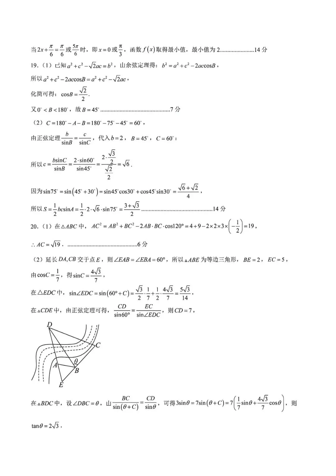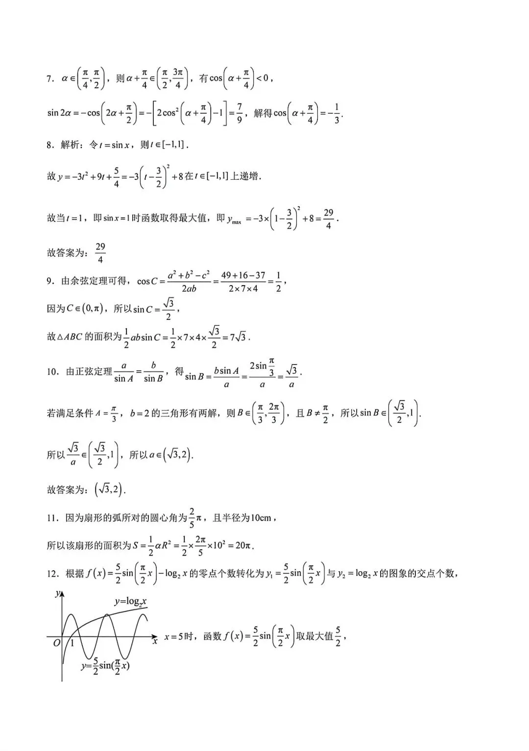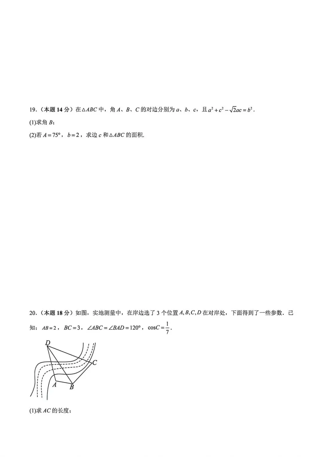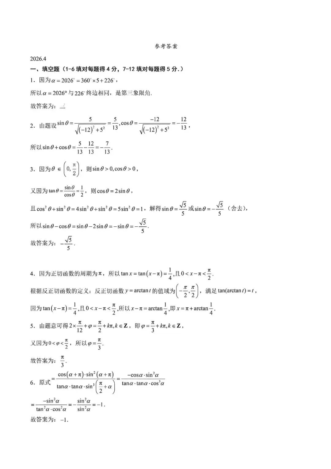 >上海市高一第二学期数学期中模拟试卷及答案(2026.4)