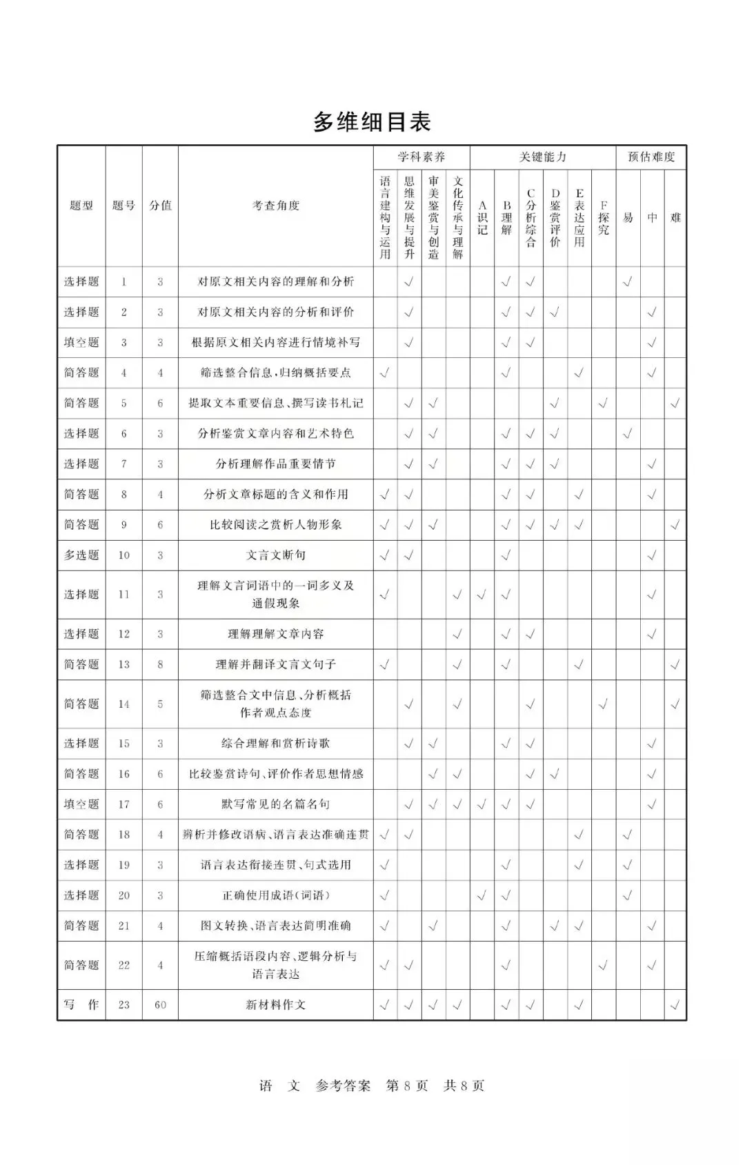 2026届高三T8联考语文试卷及答案(山西)