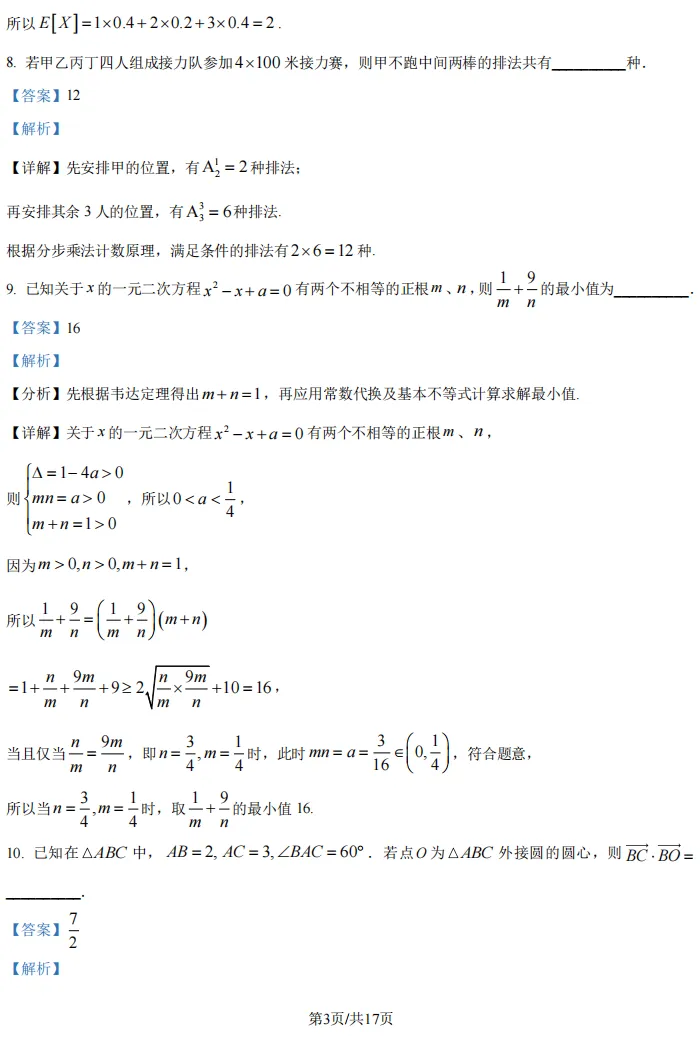 曹杨二中高一/高二月考数学试卷及答案(2026.03)