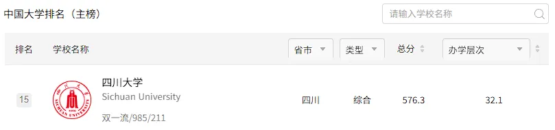 四川大学是教育部直属全国重点大学,是国家布局在中国西部的重点建设的高水平研究型综合大学,是国家“双一流”建设高校(A类),覆盖了哲学、经济学、法学、教育学、文学、历史学、理学、工学、农学、医学、管理学、艺术学、交叉学科等13个门类。