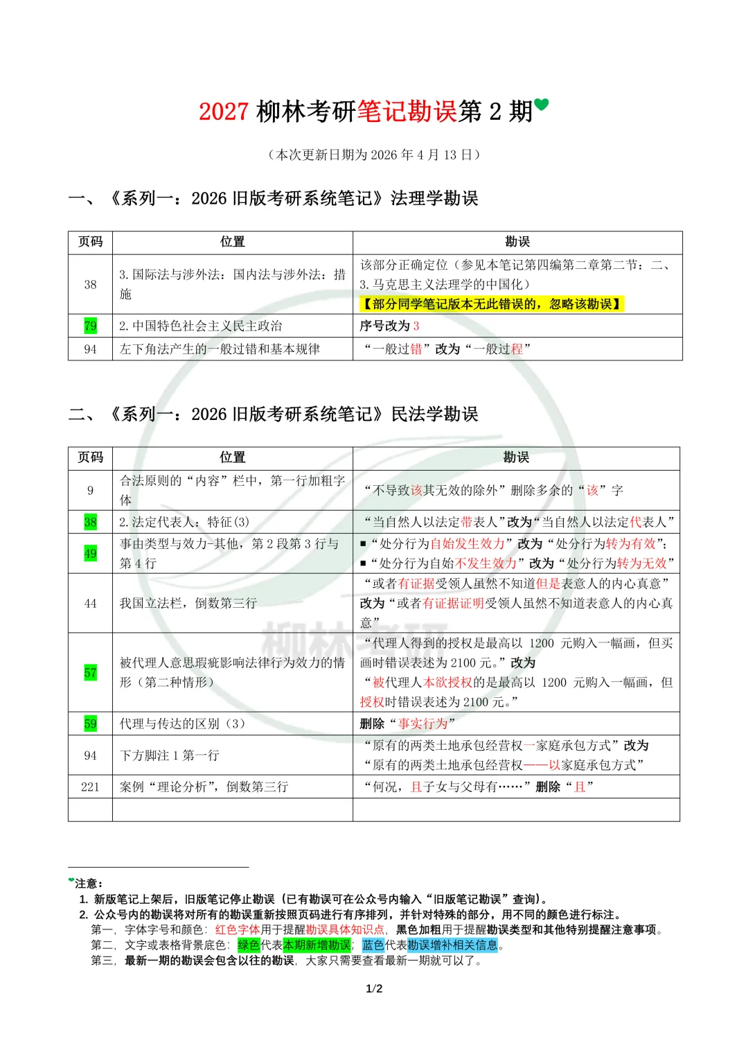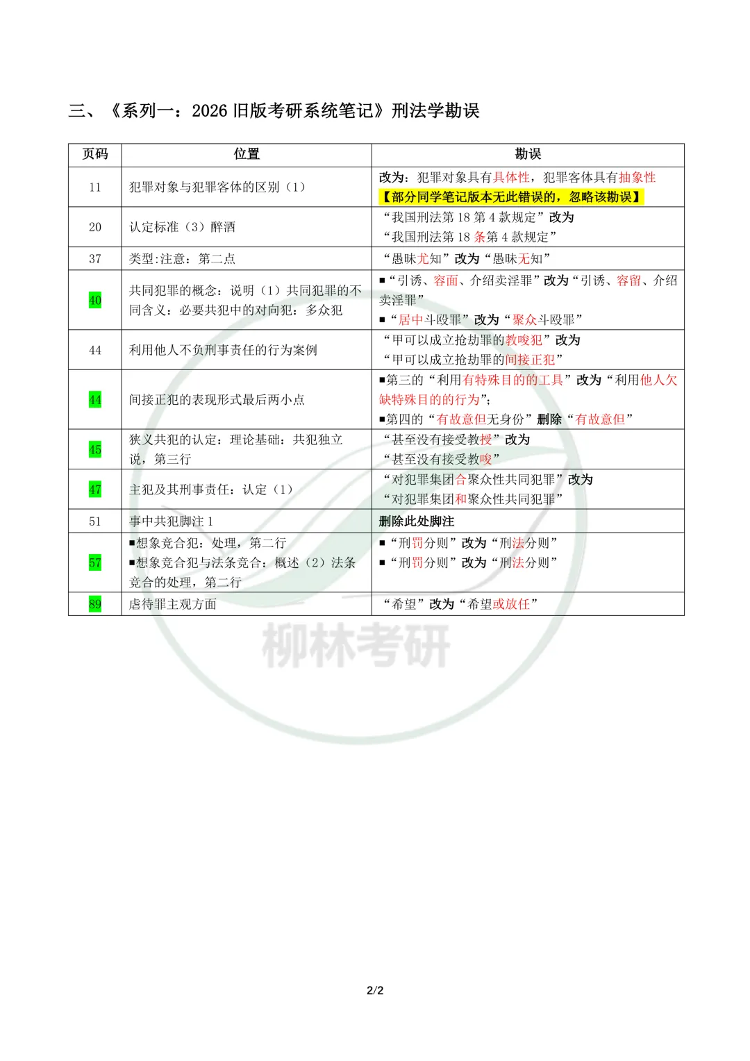 >勘误更新 | 2027柳林考研笔记勘误(第2期)