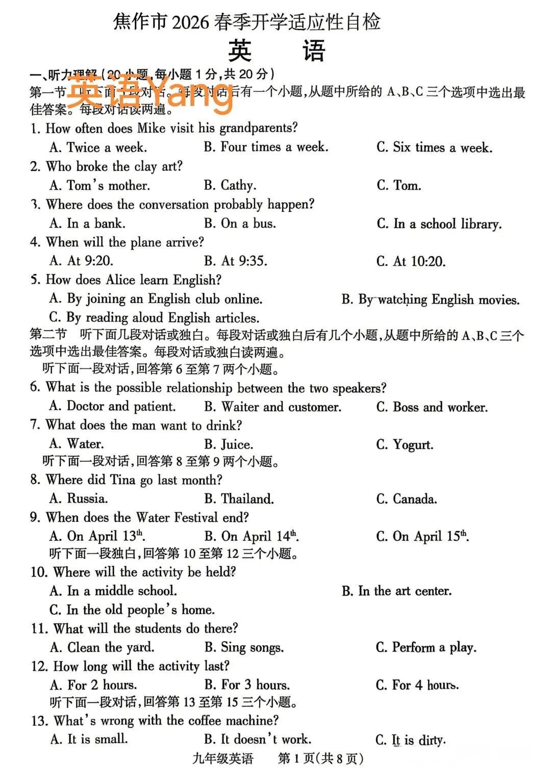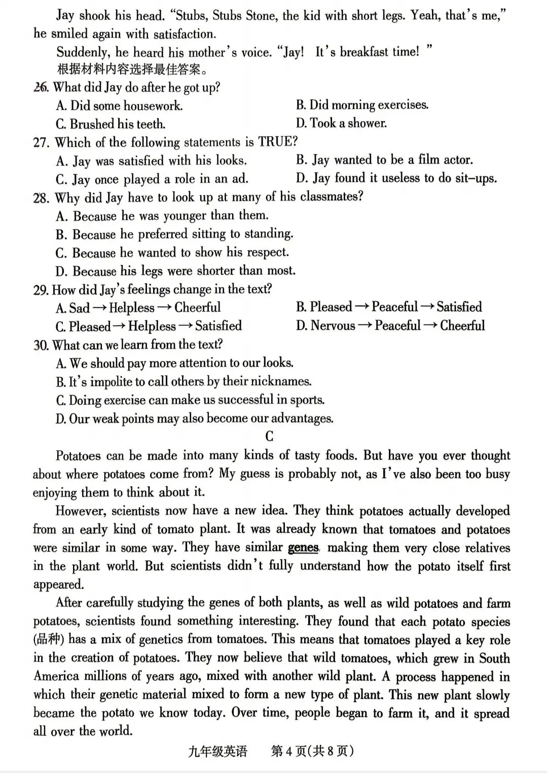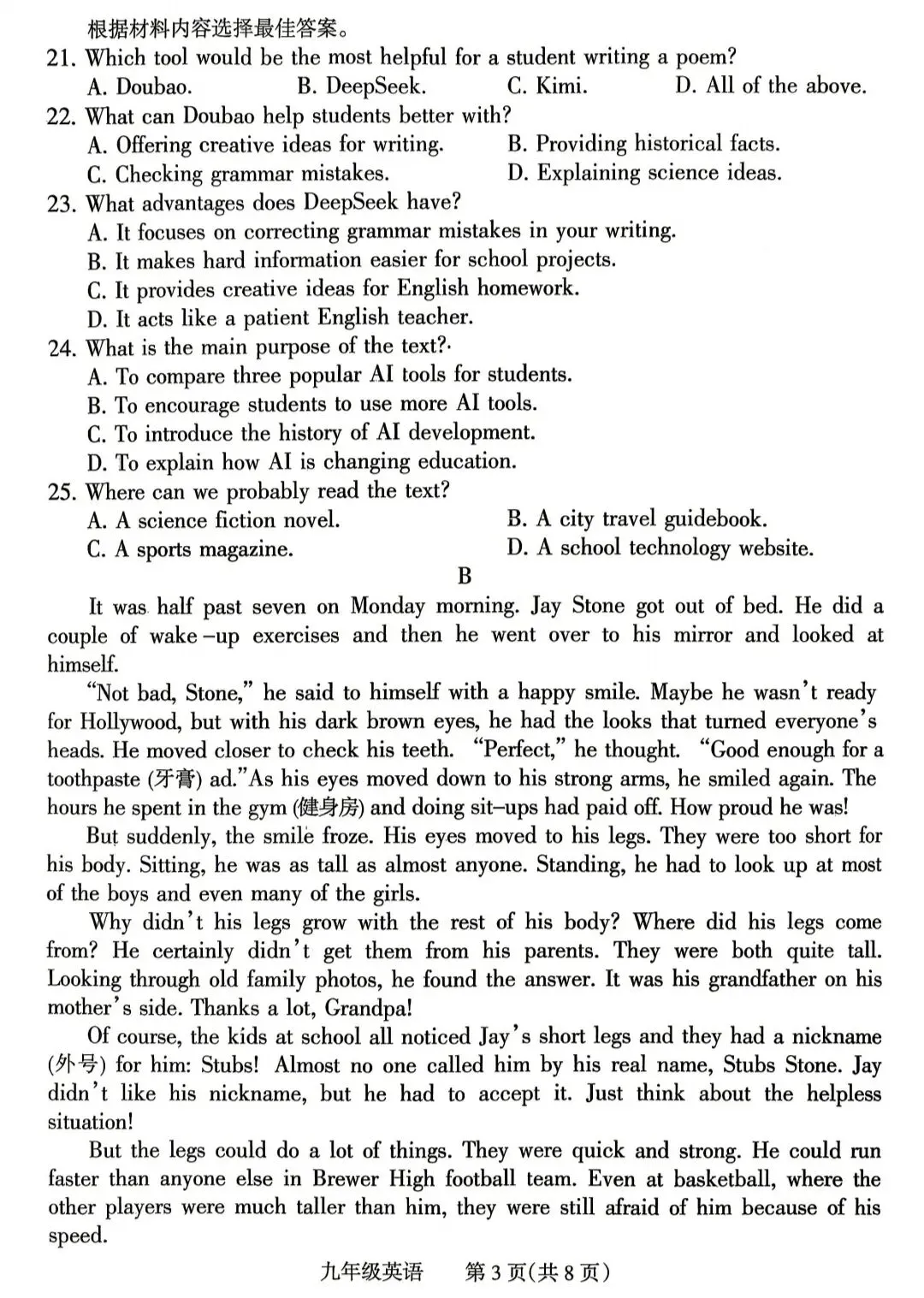 25-26郑州外国语中考一模试卷(附听力及答案)