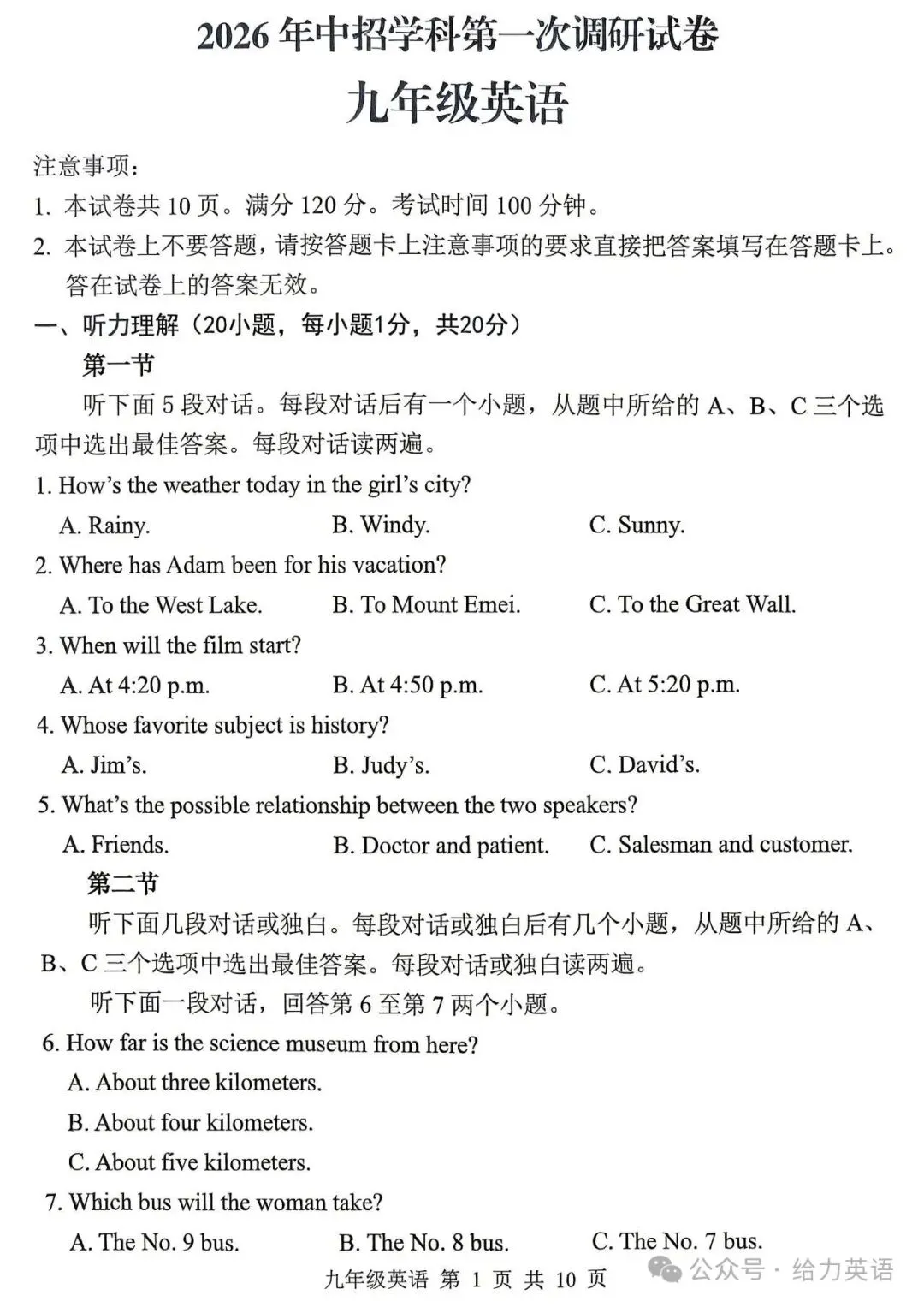 高三二模|2026年4月台州高三二模试卷+答案全(内含下载链接)