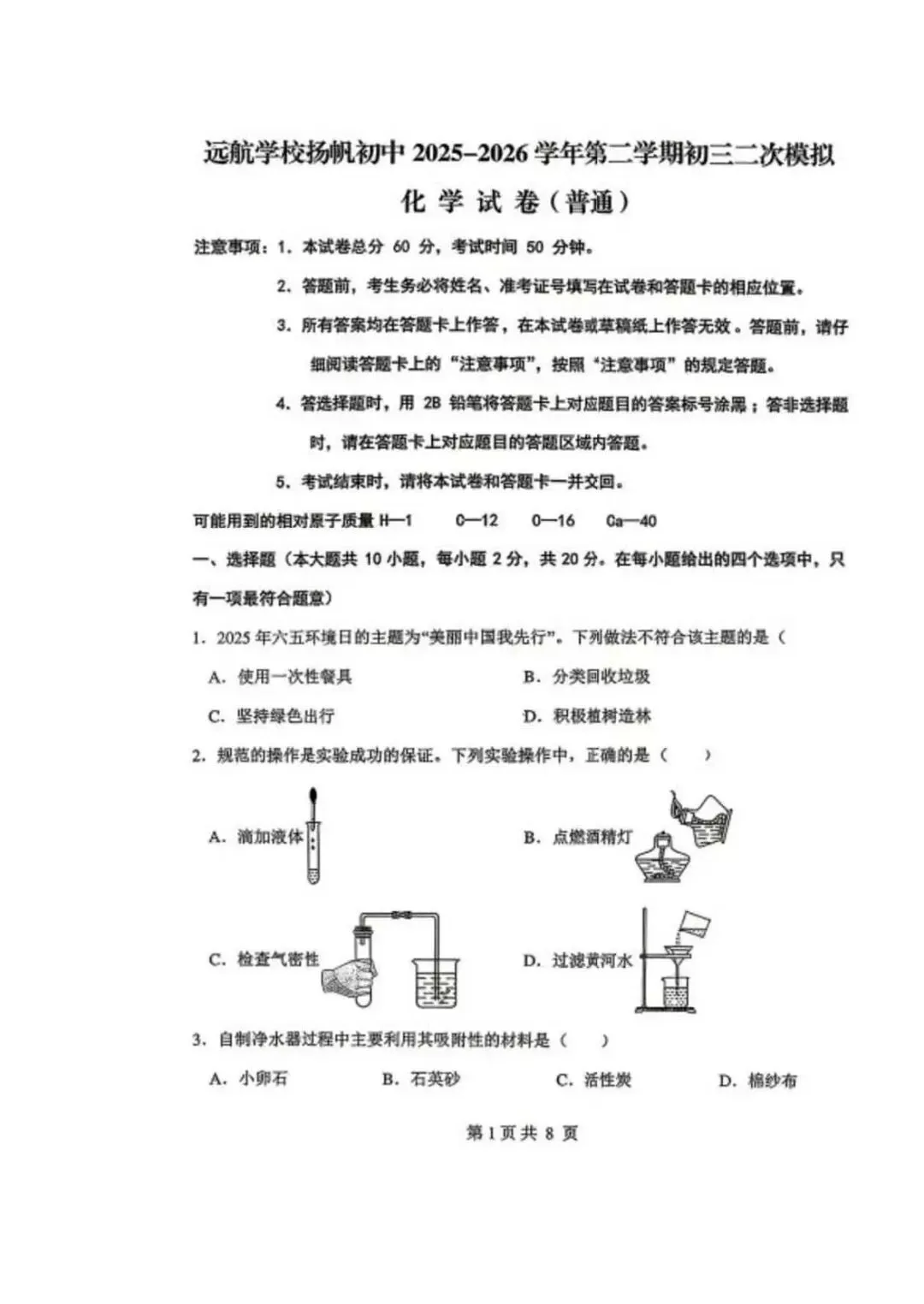 >2026年邯郸市杨帆初中中考二模化学试卷