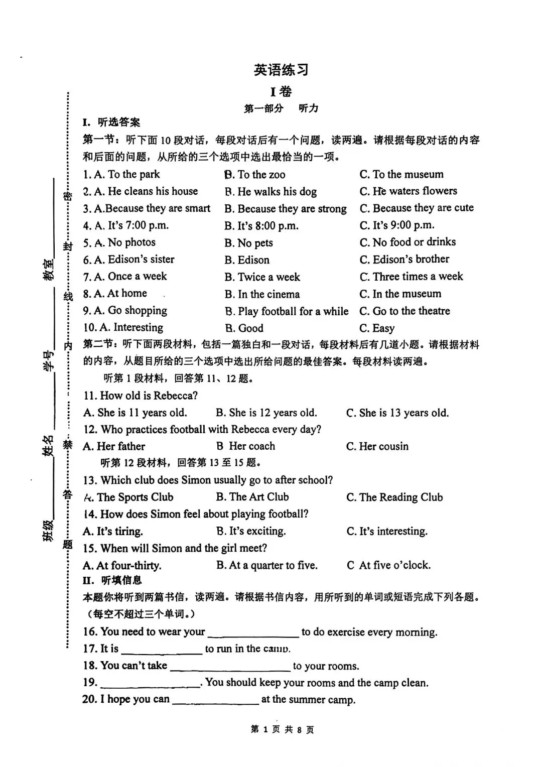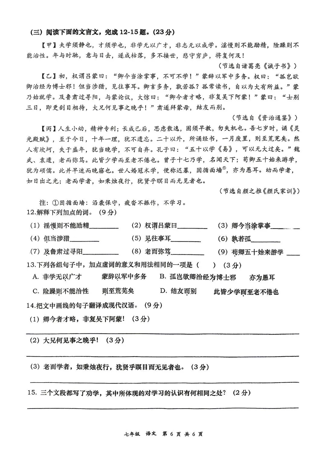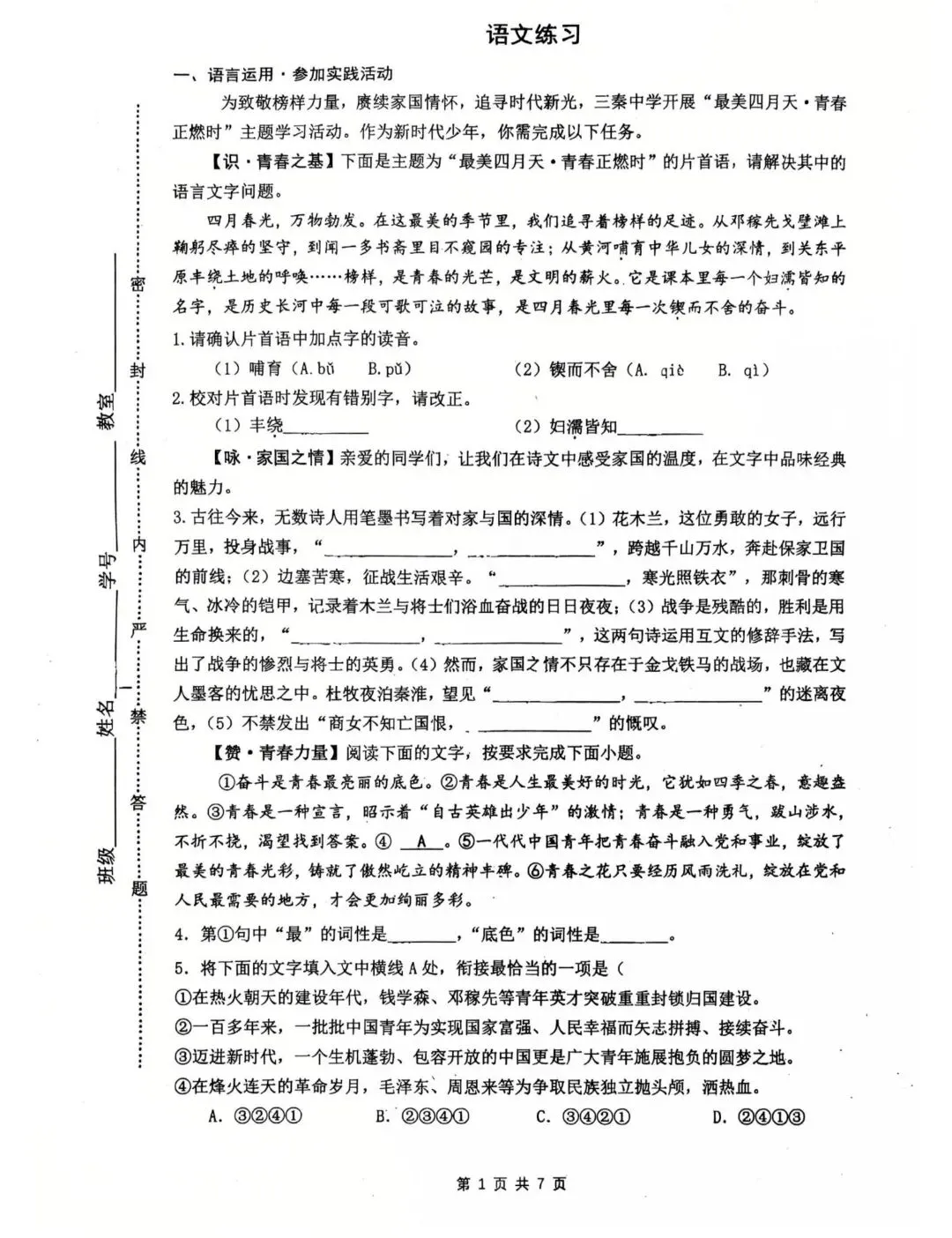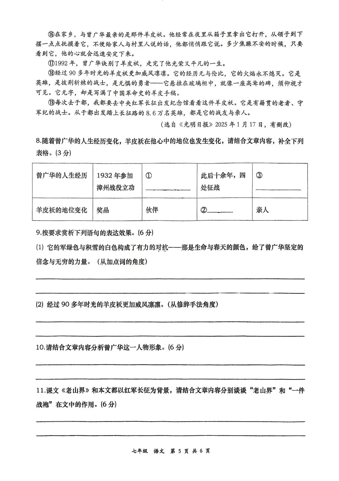 新鲜出炉!济南市中区语文一模试卷