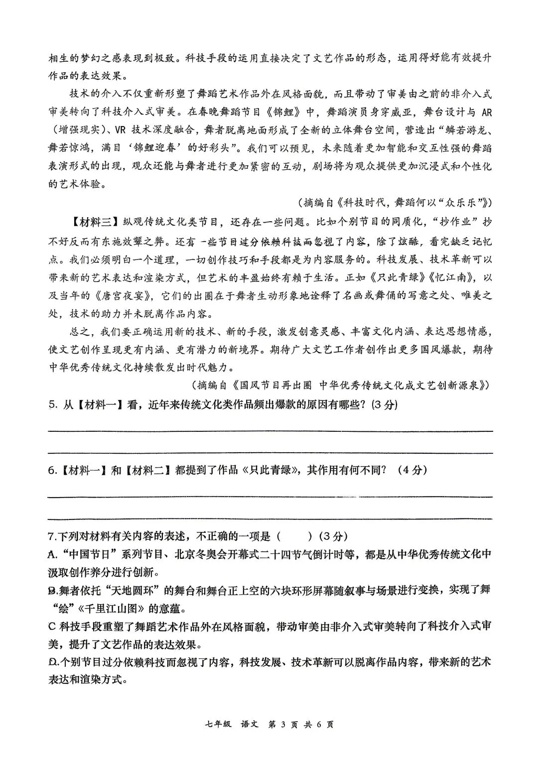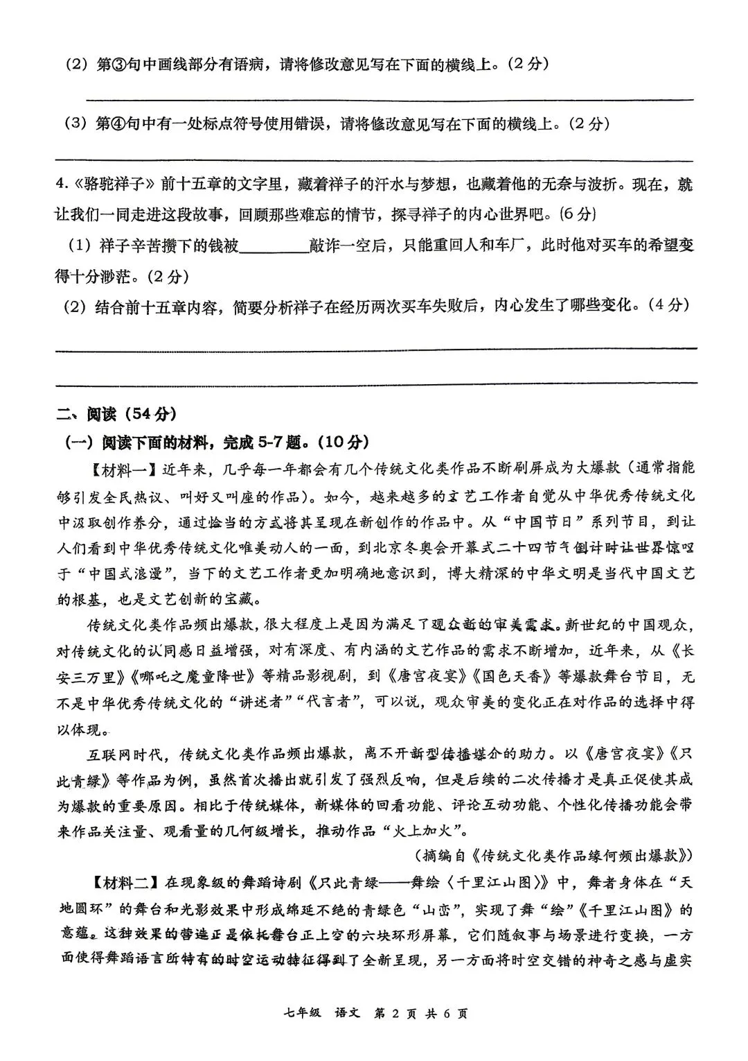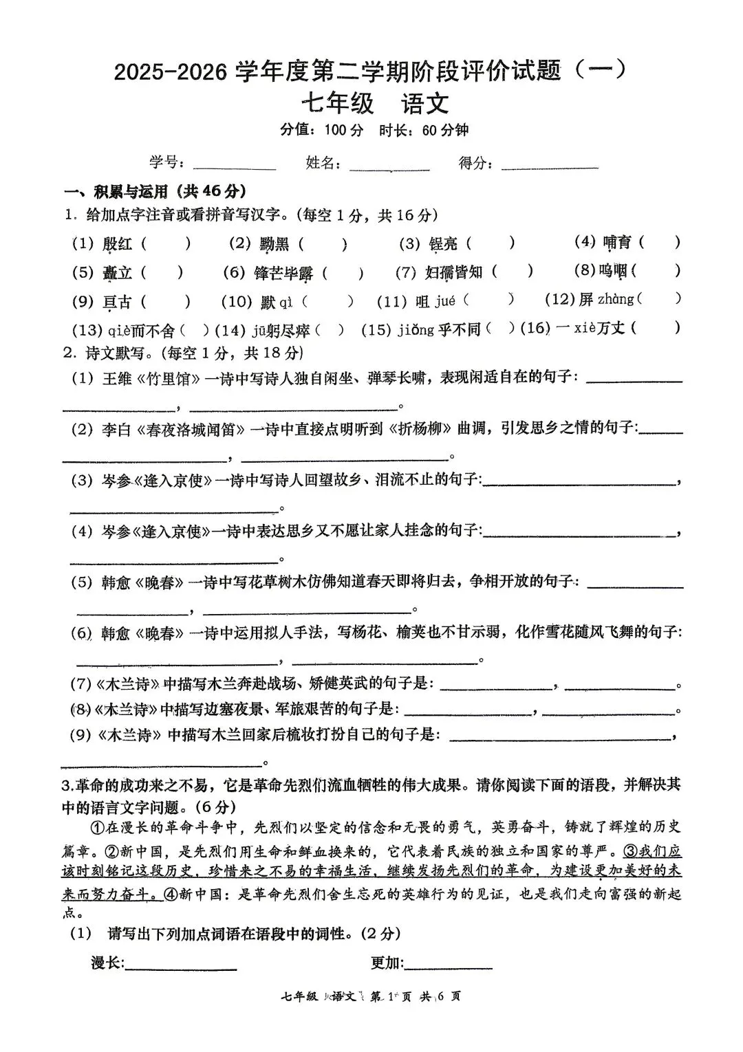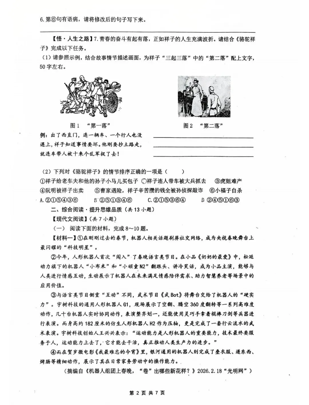 2026中考语文试卷,含答案,可免费下载打印