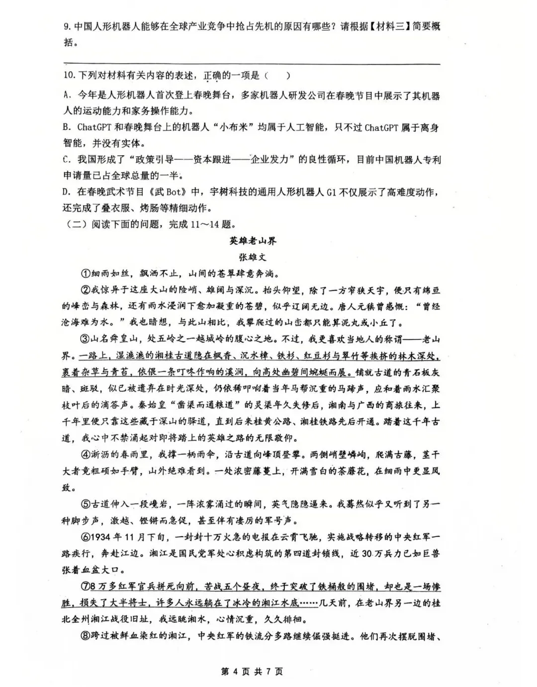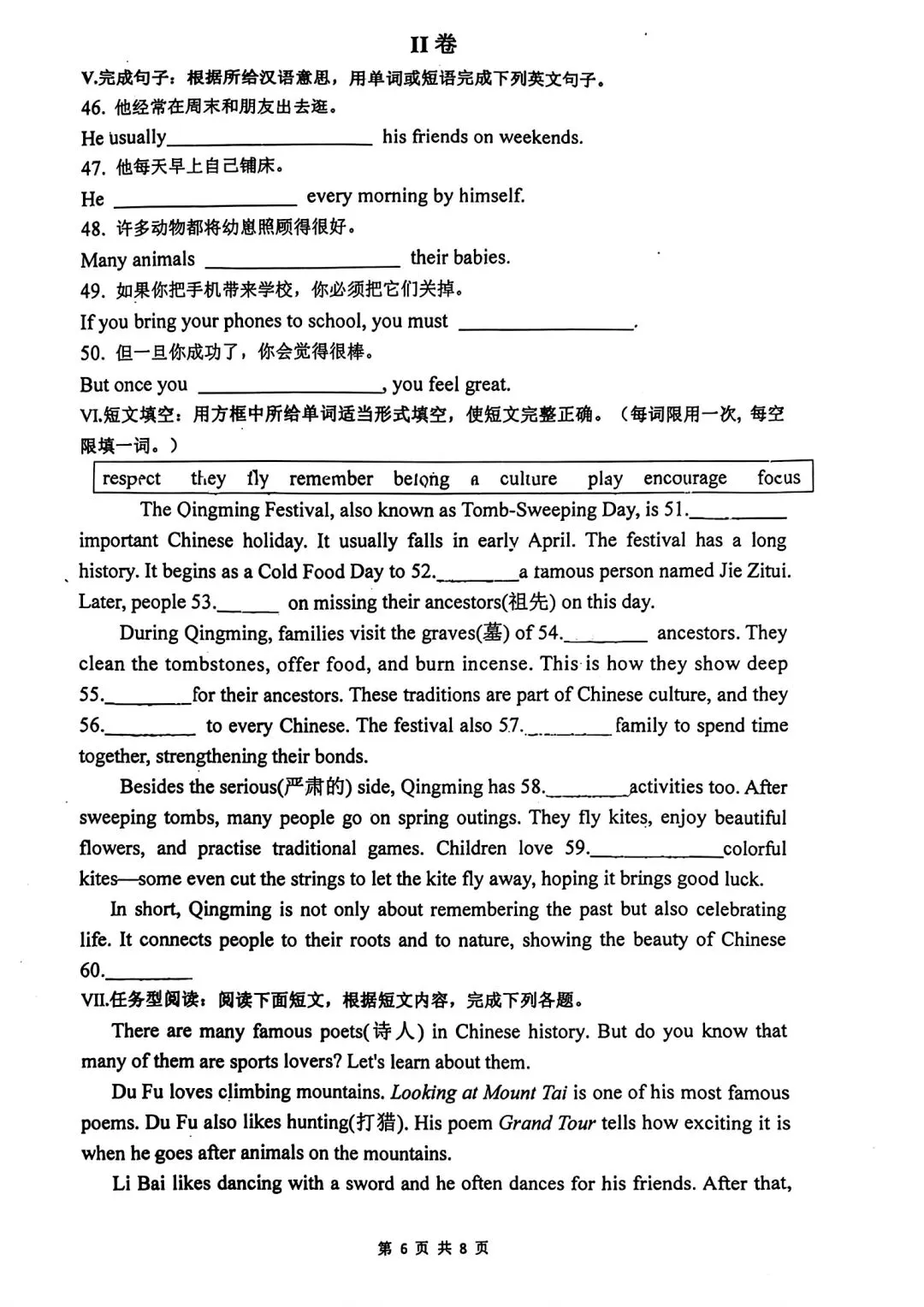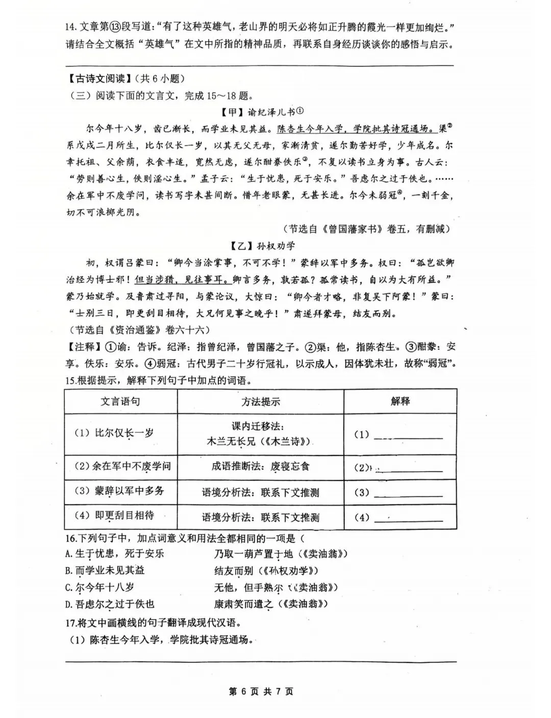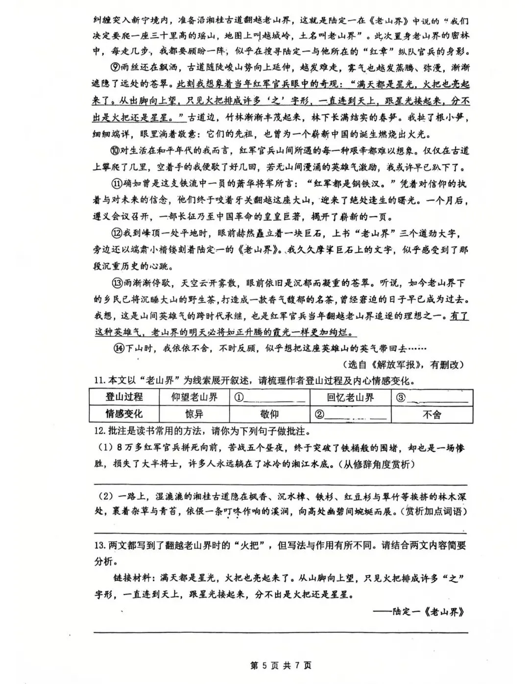 2026中考语文试卷,含答案,可免费下载打印