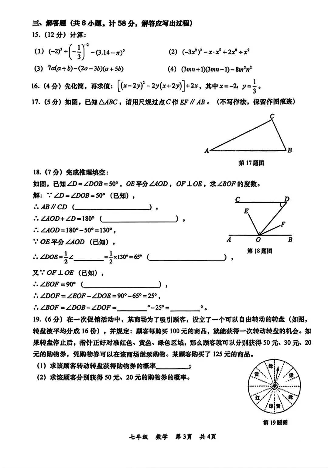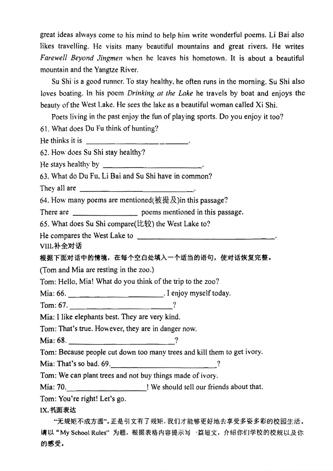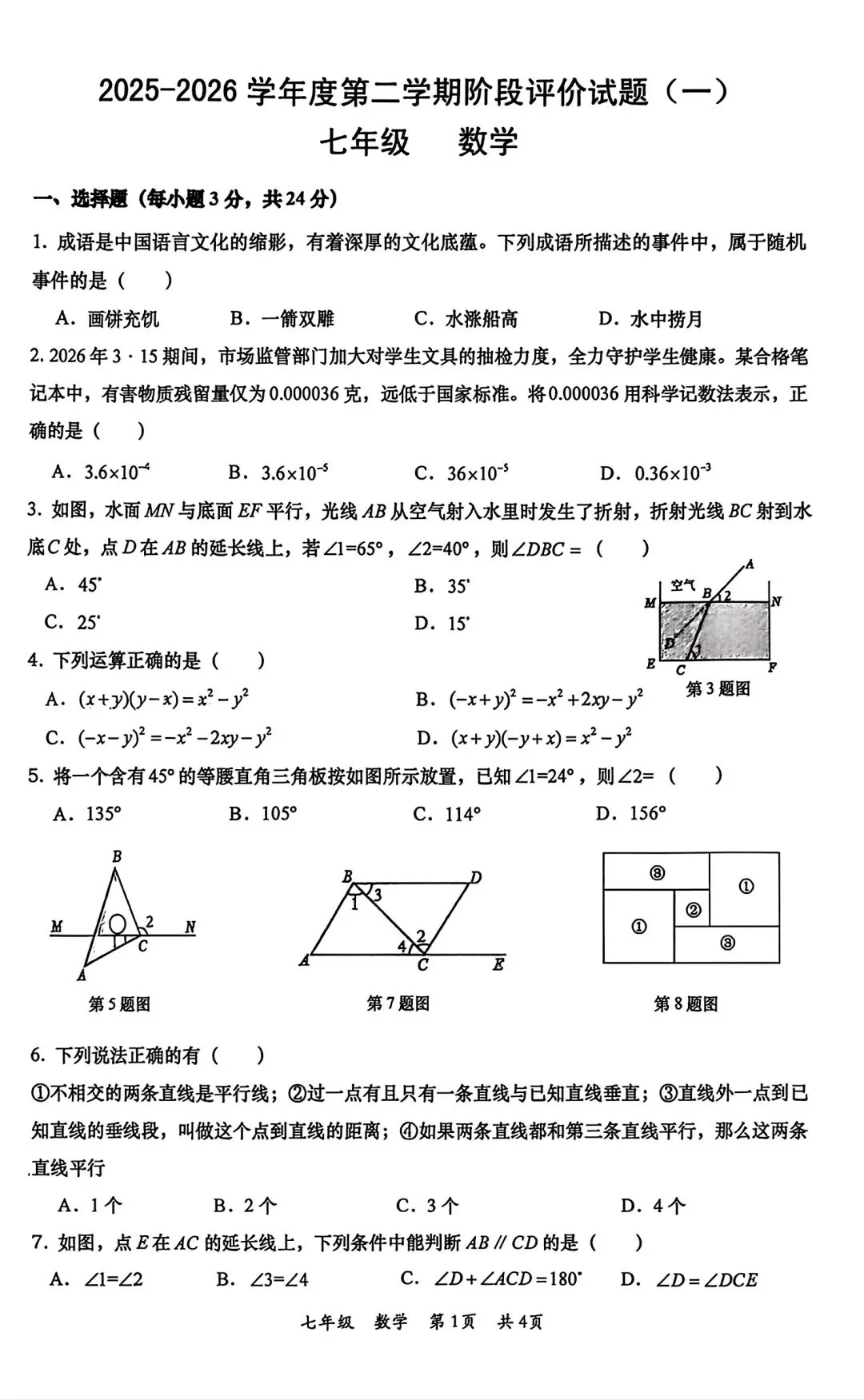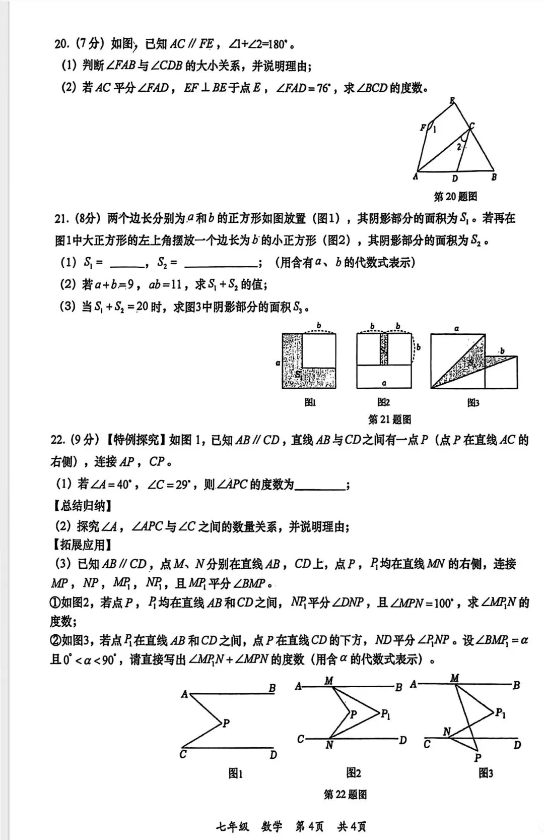 铁一一中、高新一中七下月考语数英全科试卷