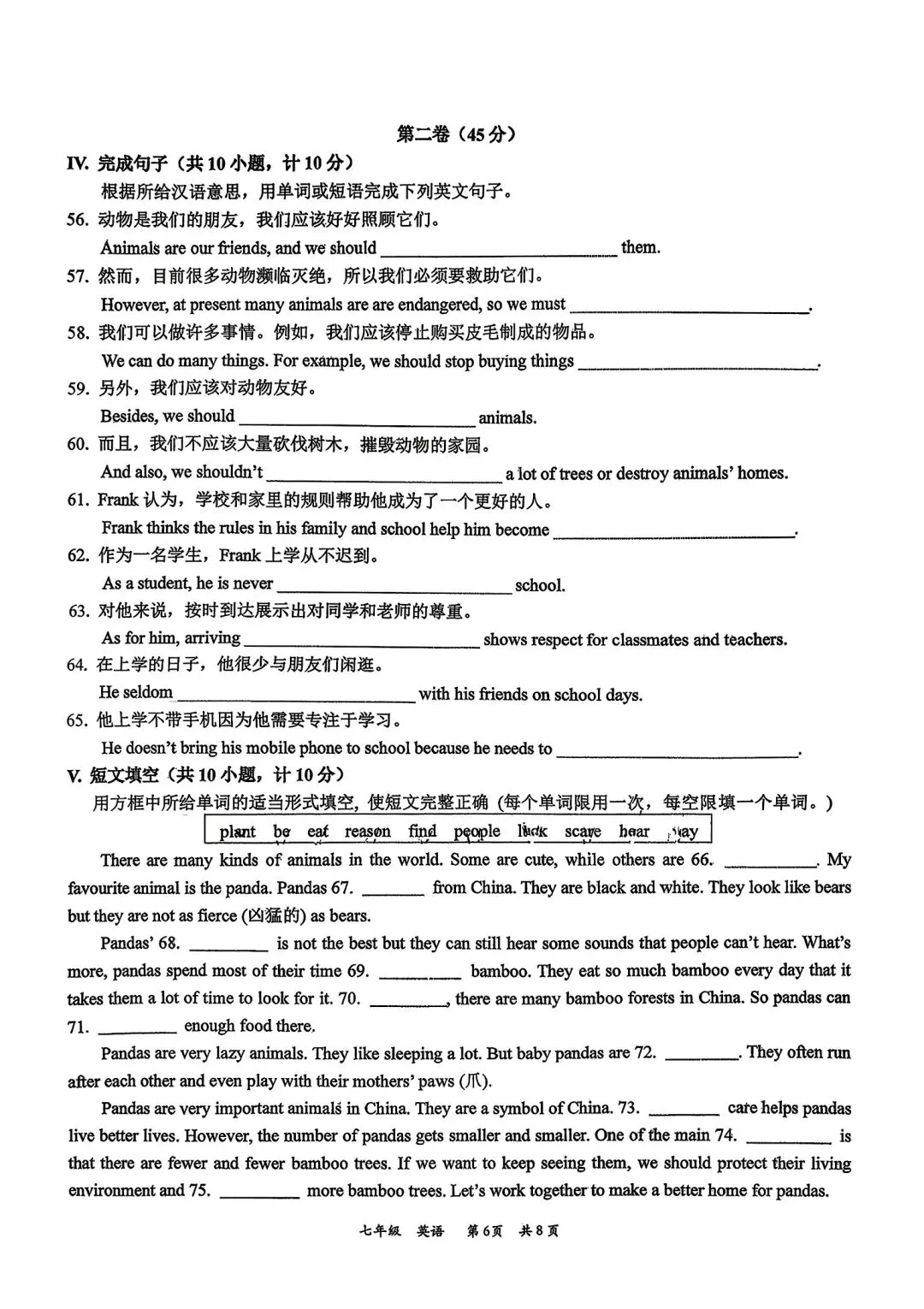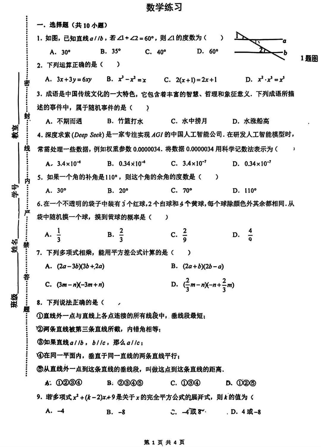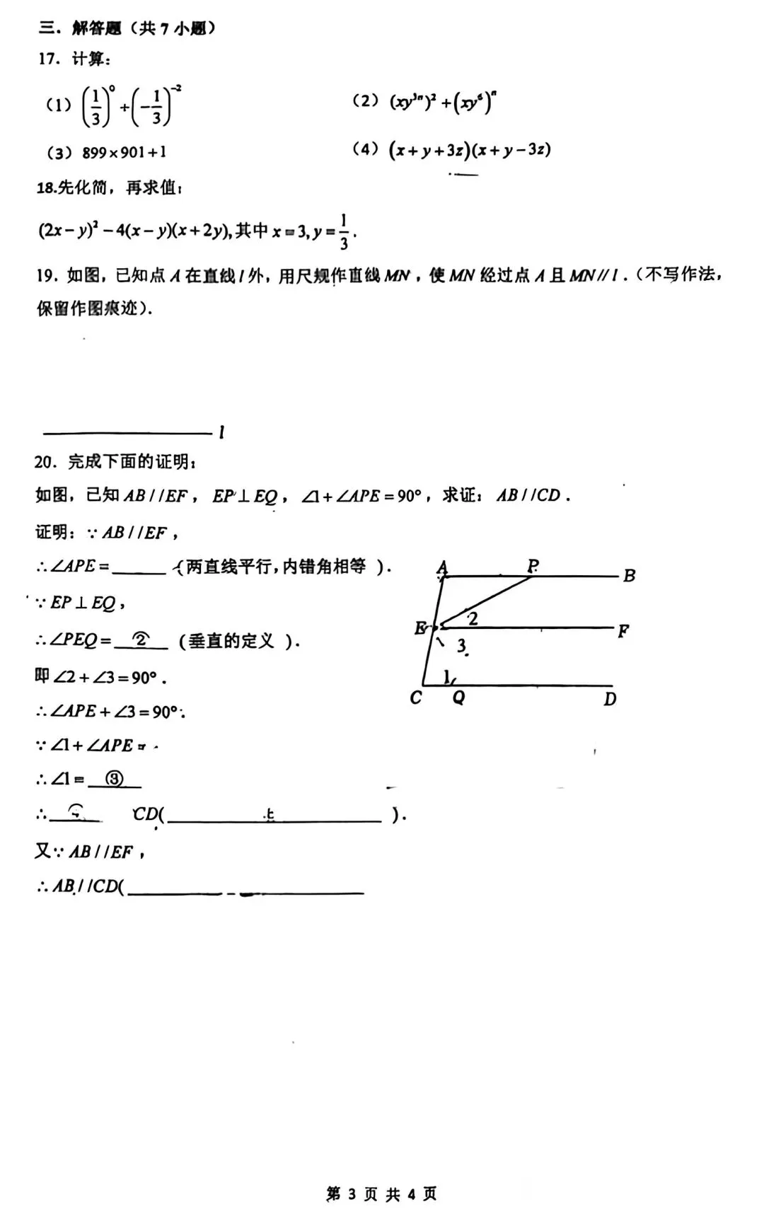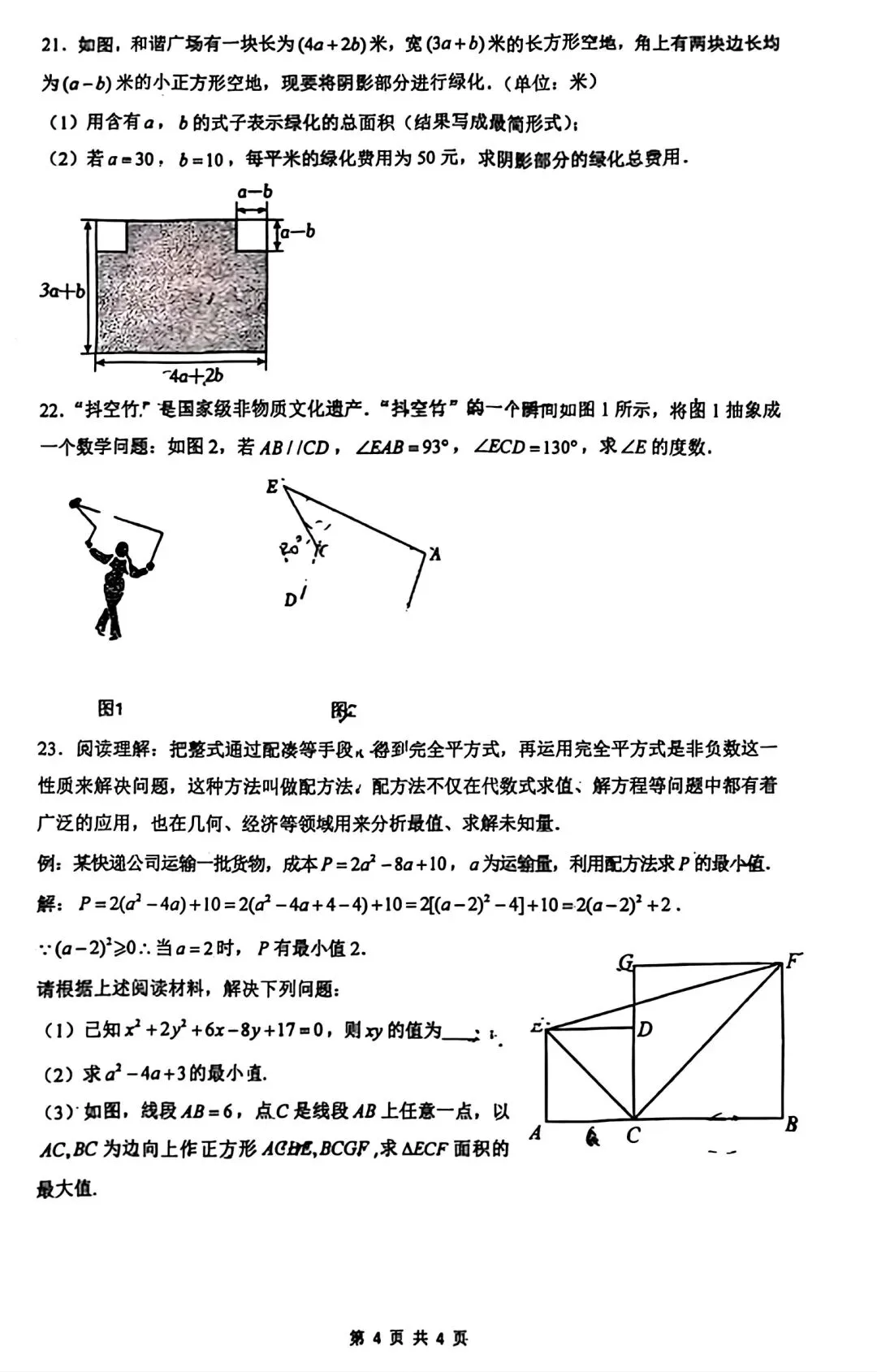 铁一一中、高新一中七下月考语数英全科试卷