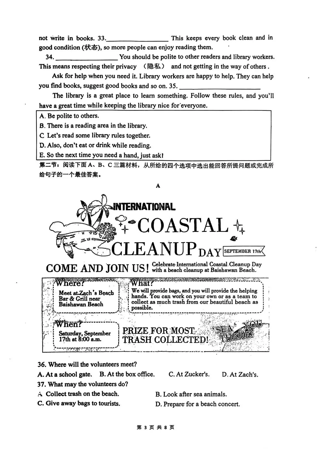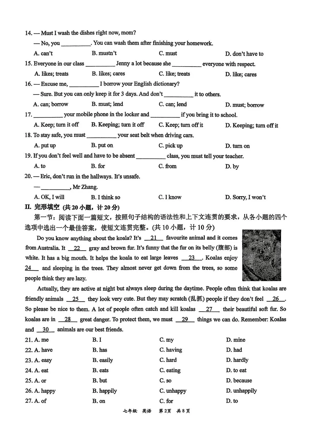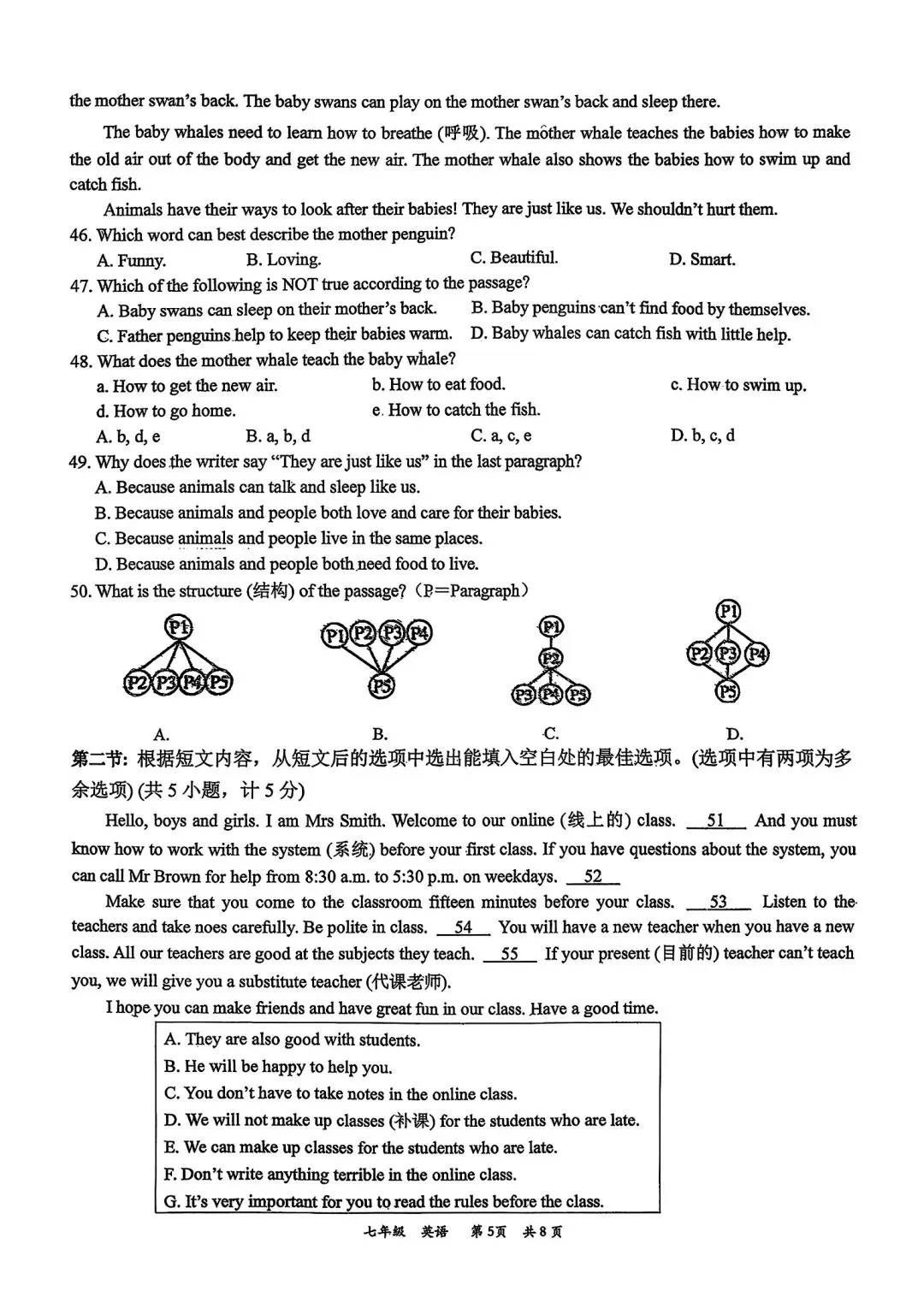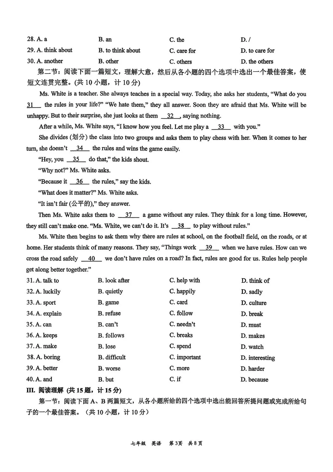 高新一中七下第一次月考官方答案(语文、英语)