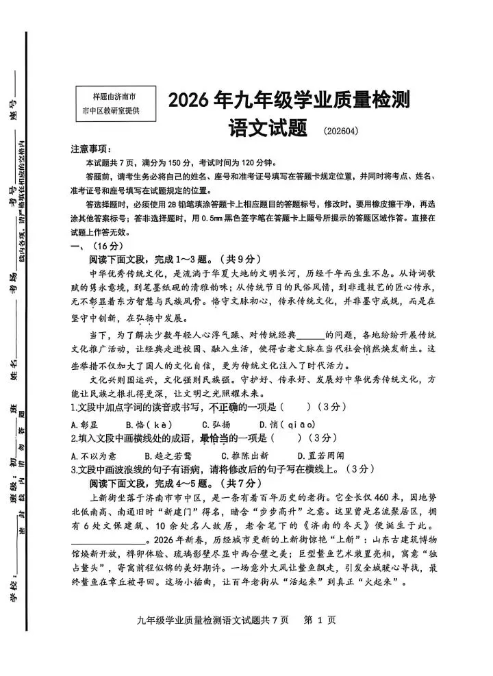 #一模试卷 #中考 #济南中考 #试卷 #答案