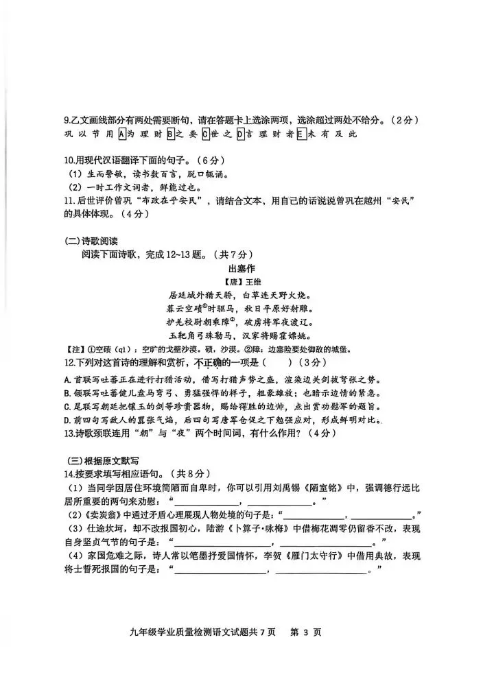 市中区语文一模试卷