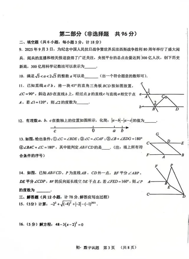 铁一一中、高新一中七下月考语数英全科试卷