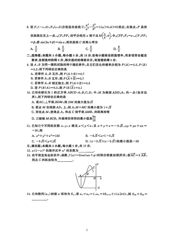 2026年高三数学第二次模拟考试试卷(新Ⅰ卷)