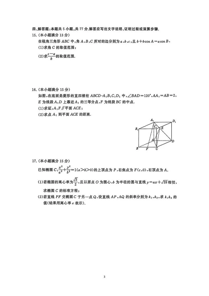 2026年水磨沟一模数学试卷及压轴题视频讲解