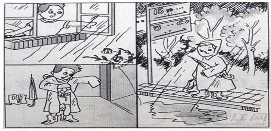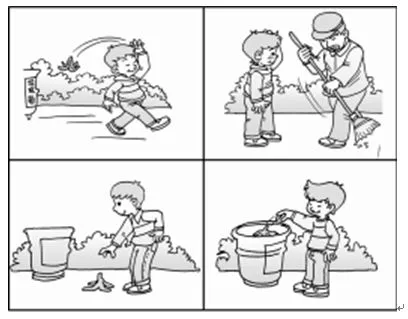 要求:请仔细观察下面的四幅图,看看图中有哪些人,他们在什么地方,干了些什么。把你看到的、想到的结合起来,编一个小故事。