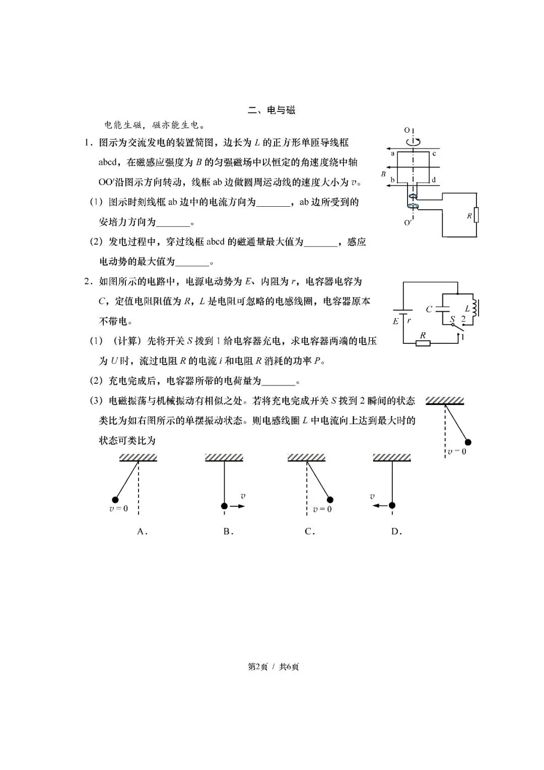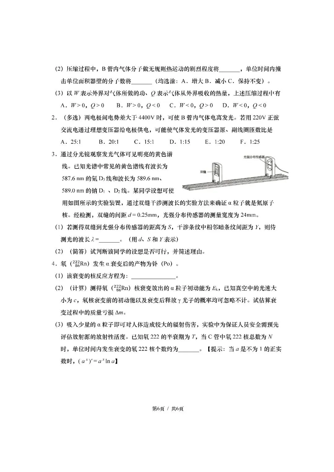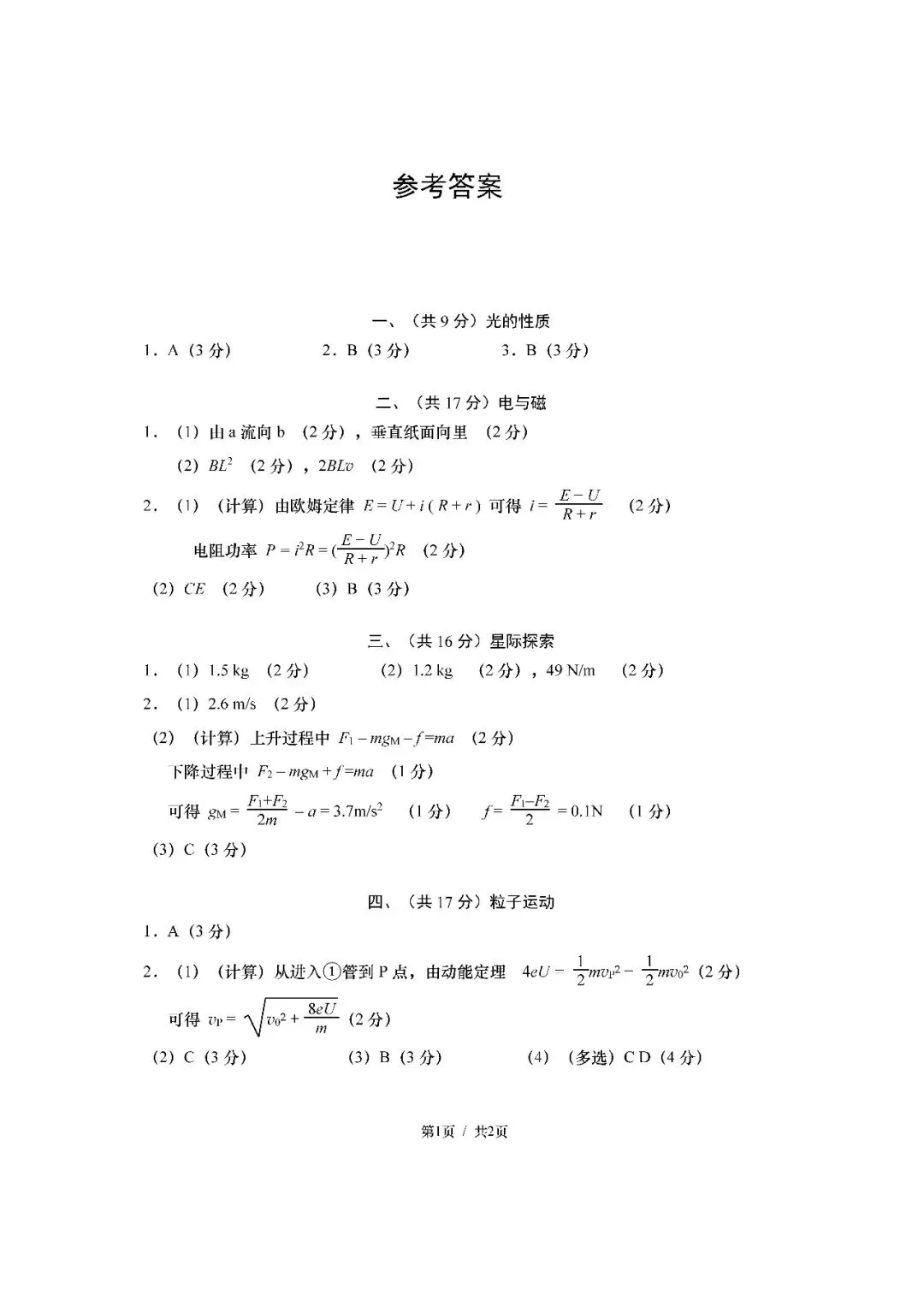2026届上海市徐汇区高三二模物理试卷(含答案)