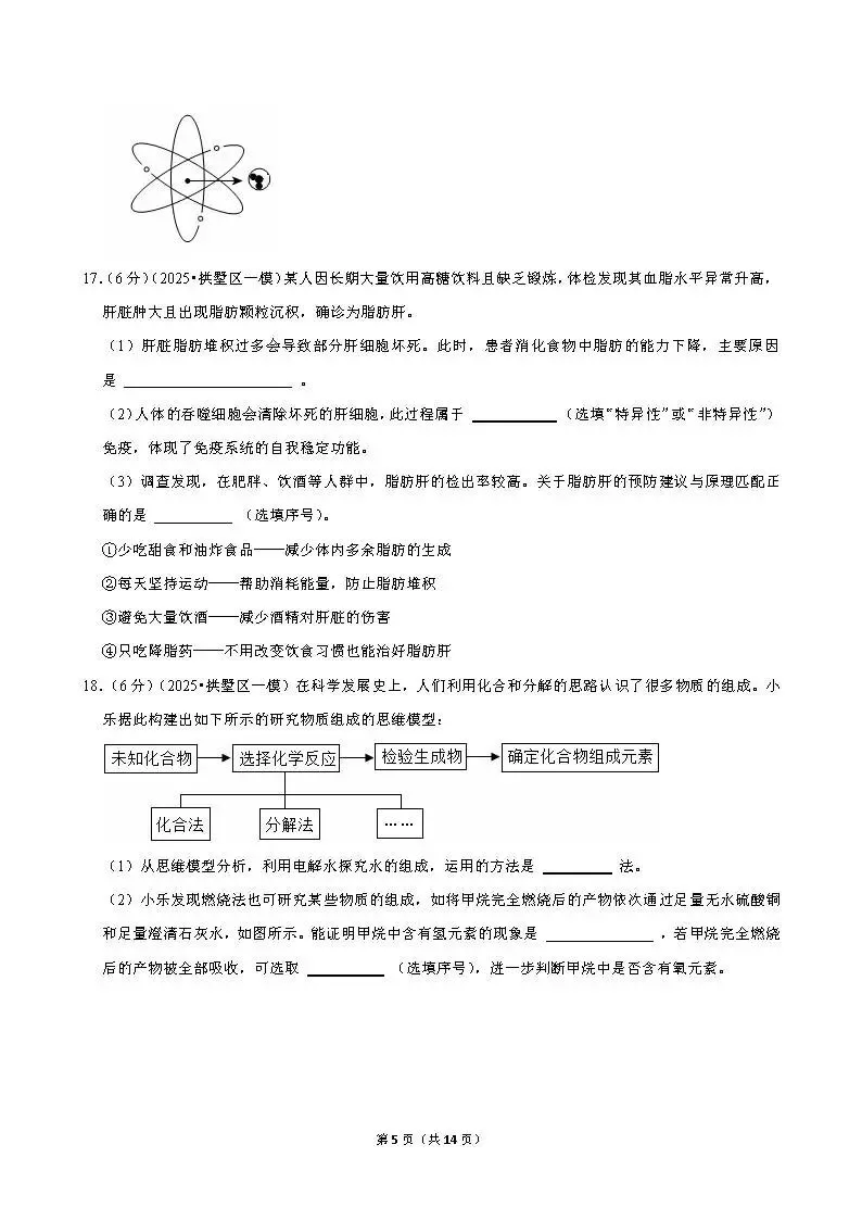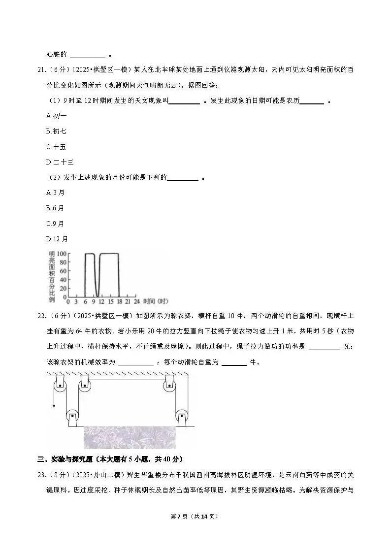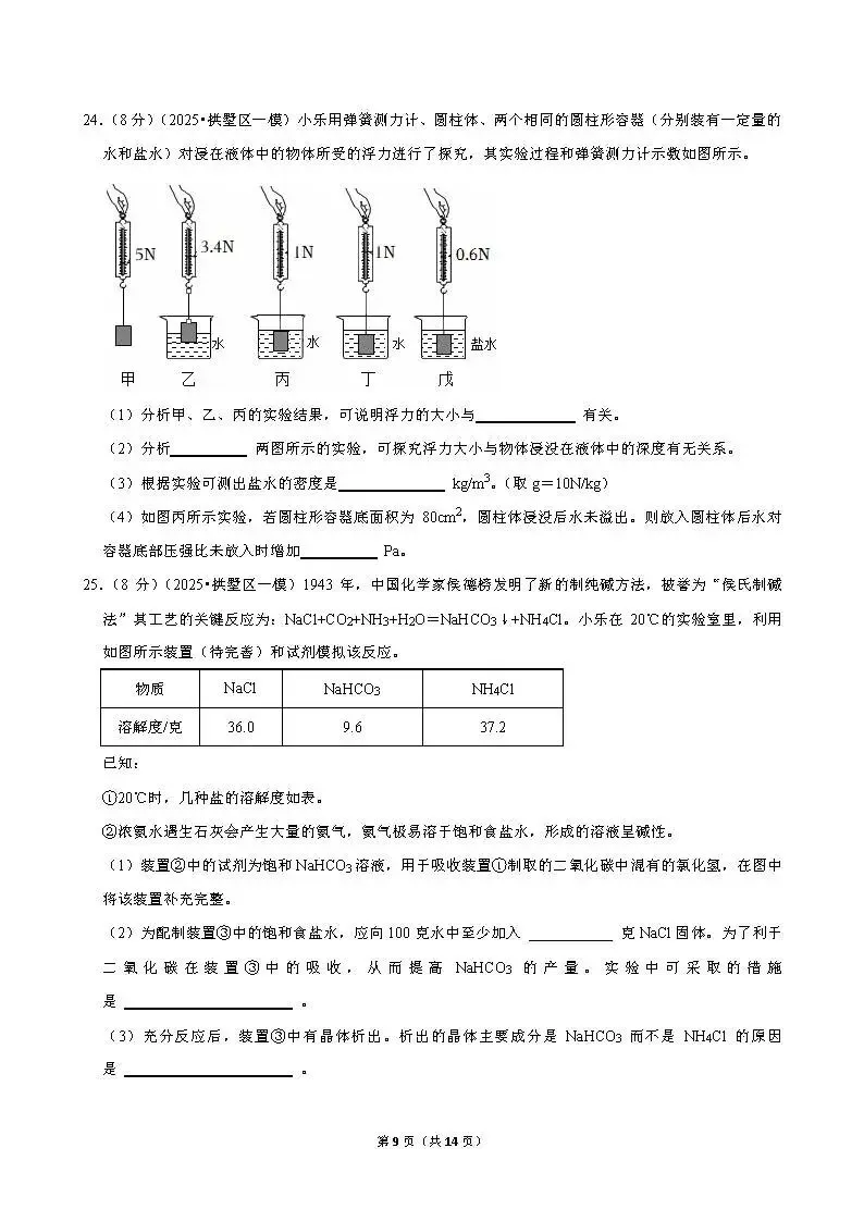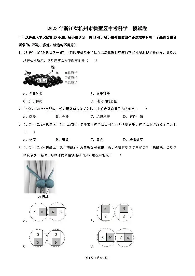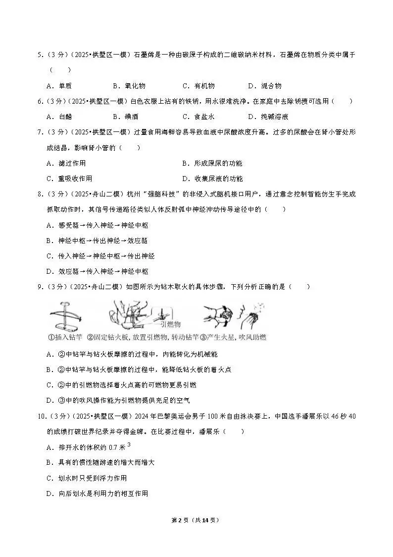 >2025年杭州市拱墅区一模科学试卷