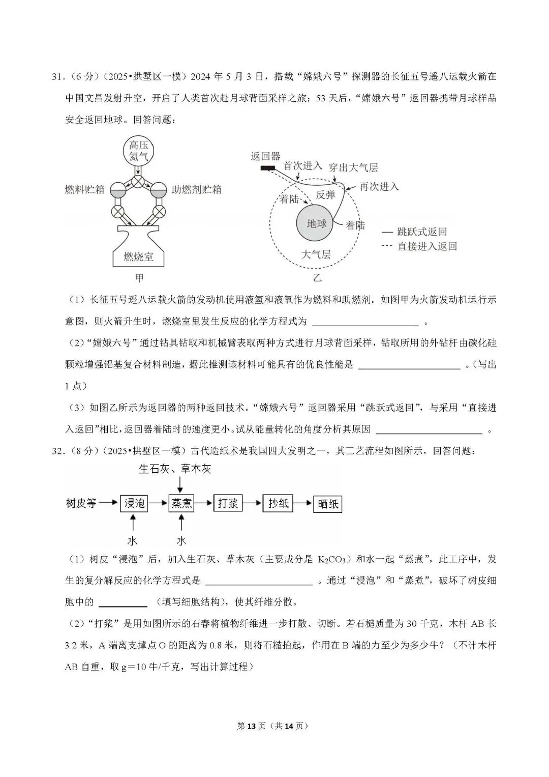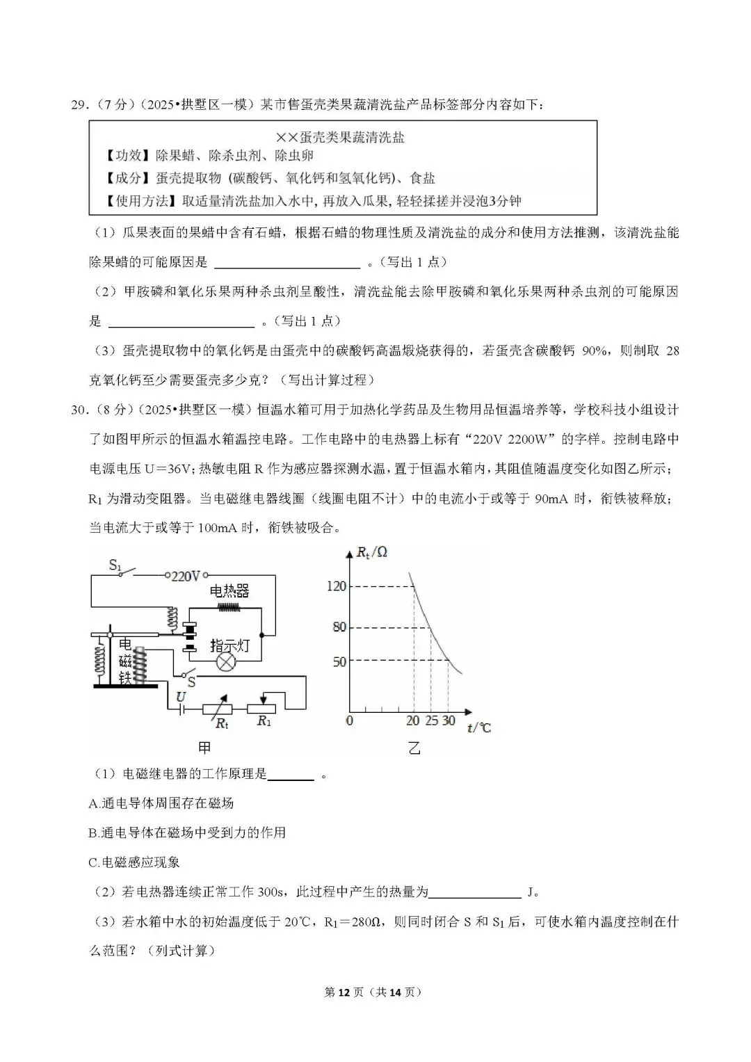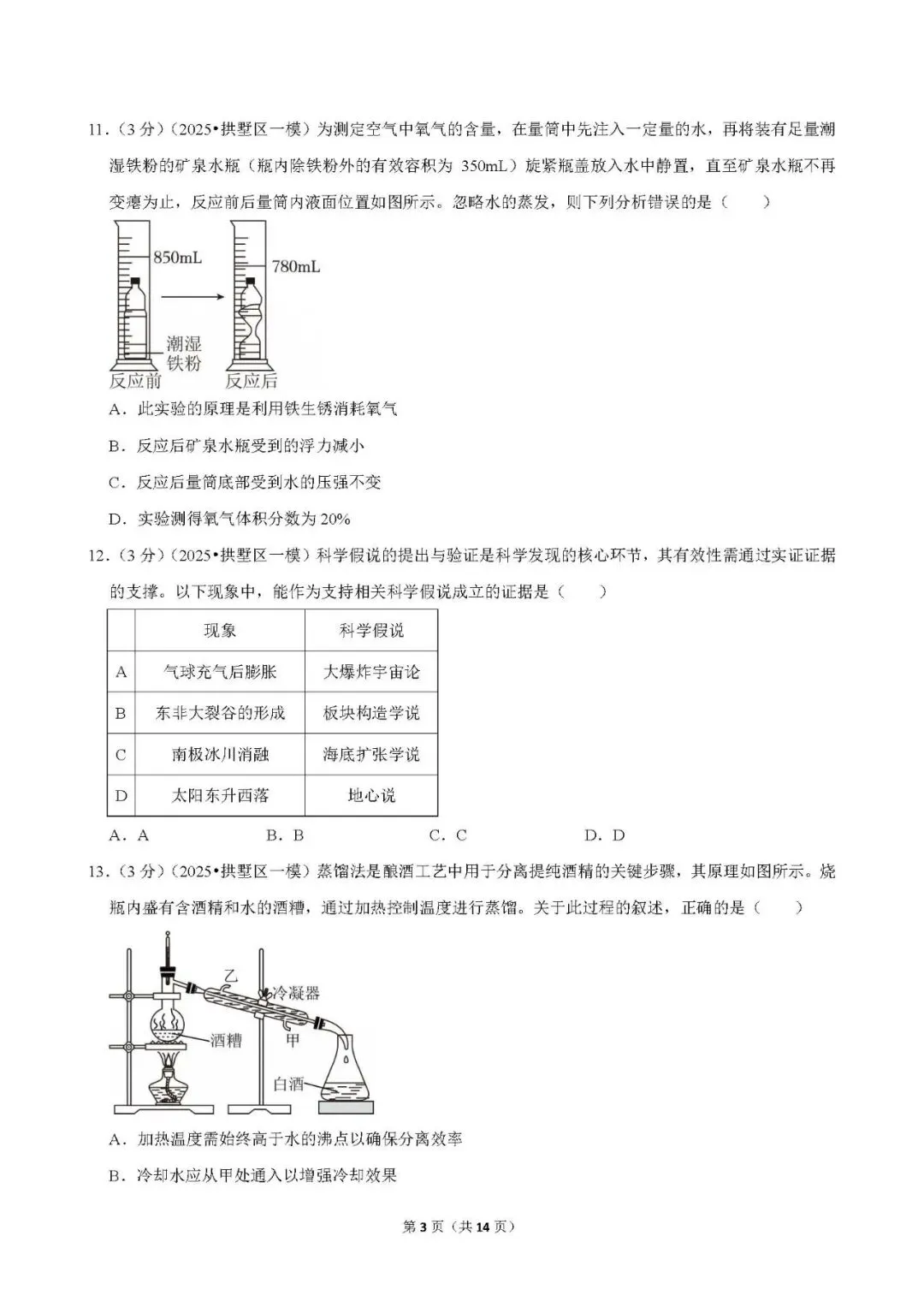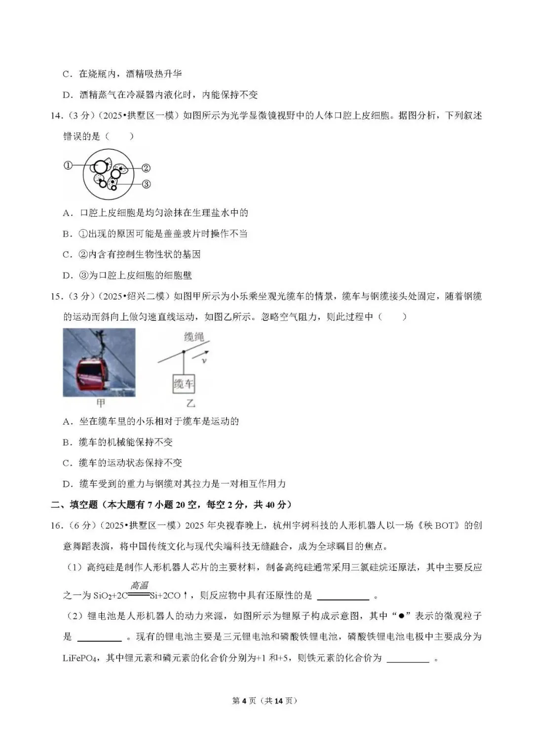>2025年杭州市拱墅区一模科学试卷