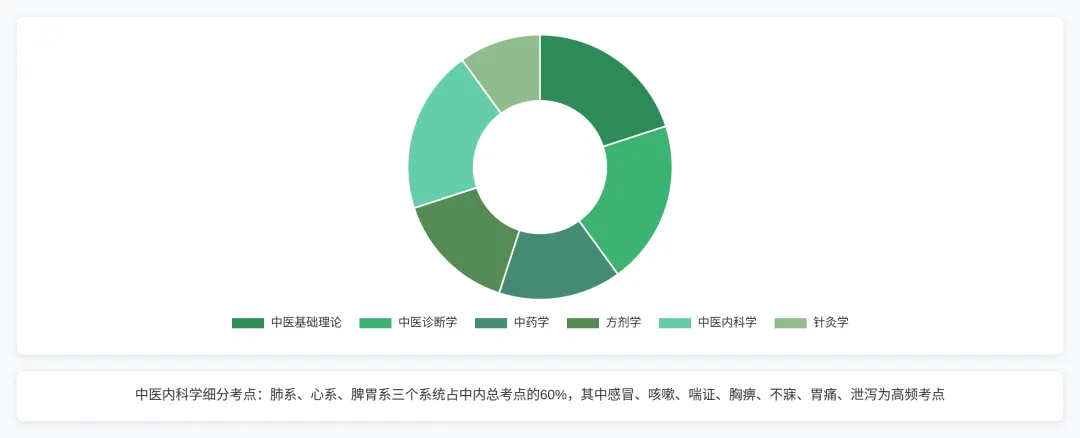 中基占20%,中诊20%,中药15%,方剂15%,中内20%,针灸10%。