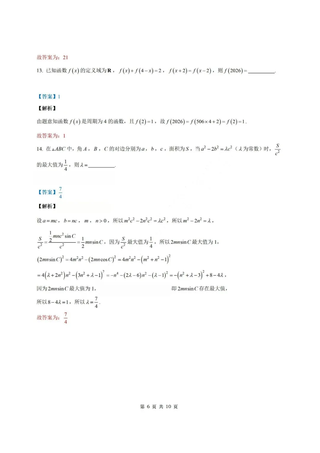 >【试卷+答案】2026年4月绍兴二模—高三数学