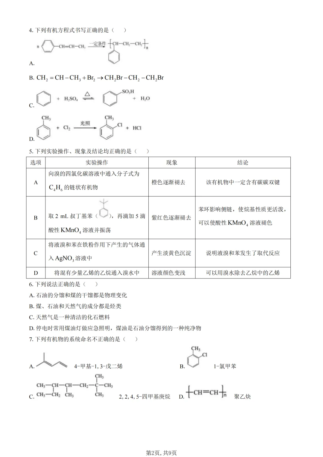 >巴蜀2026年高二下4月月考化学试卷+解析