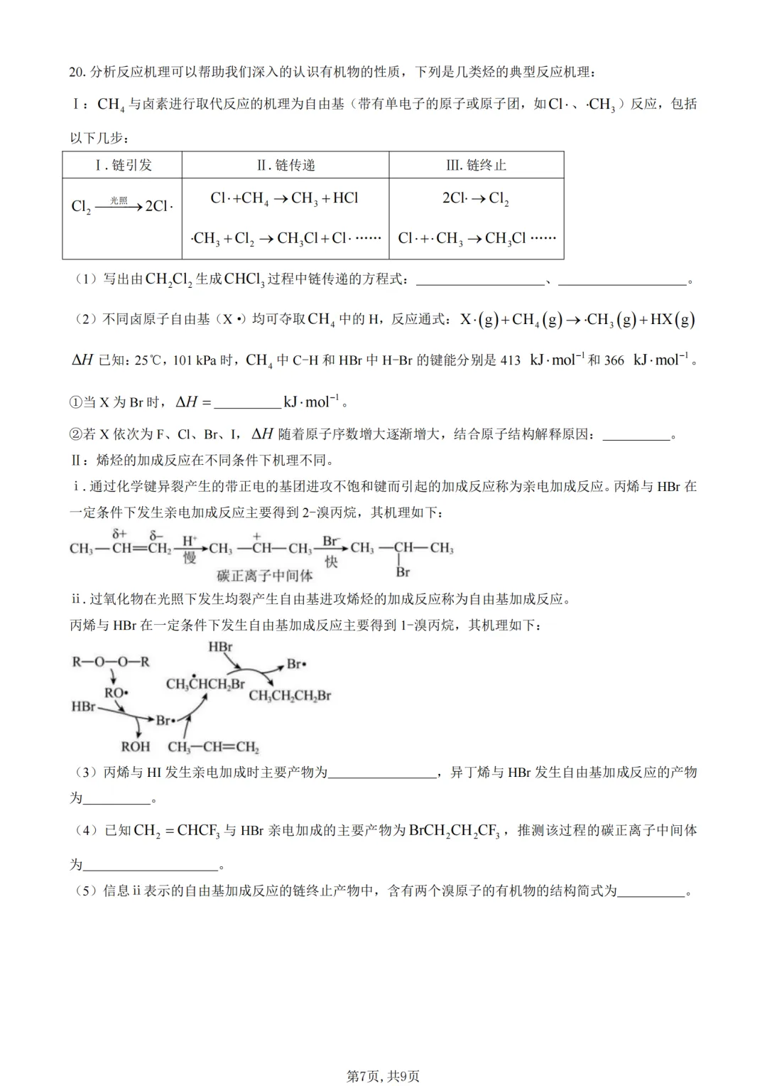 2026届上海市杨浦区高三二模化学试卷(含答案)