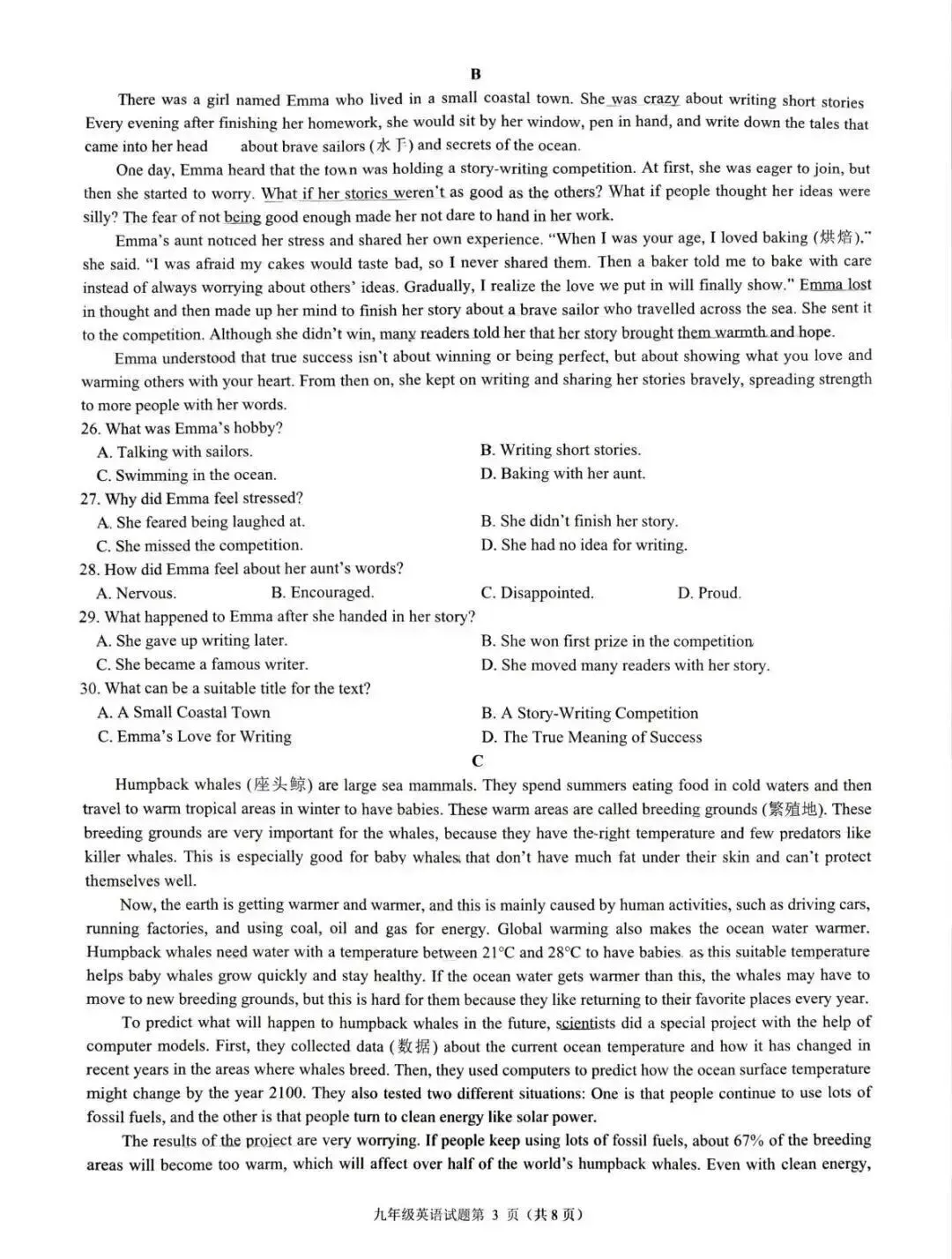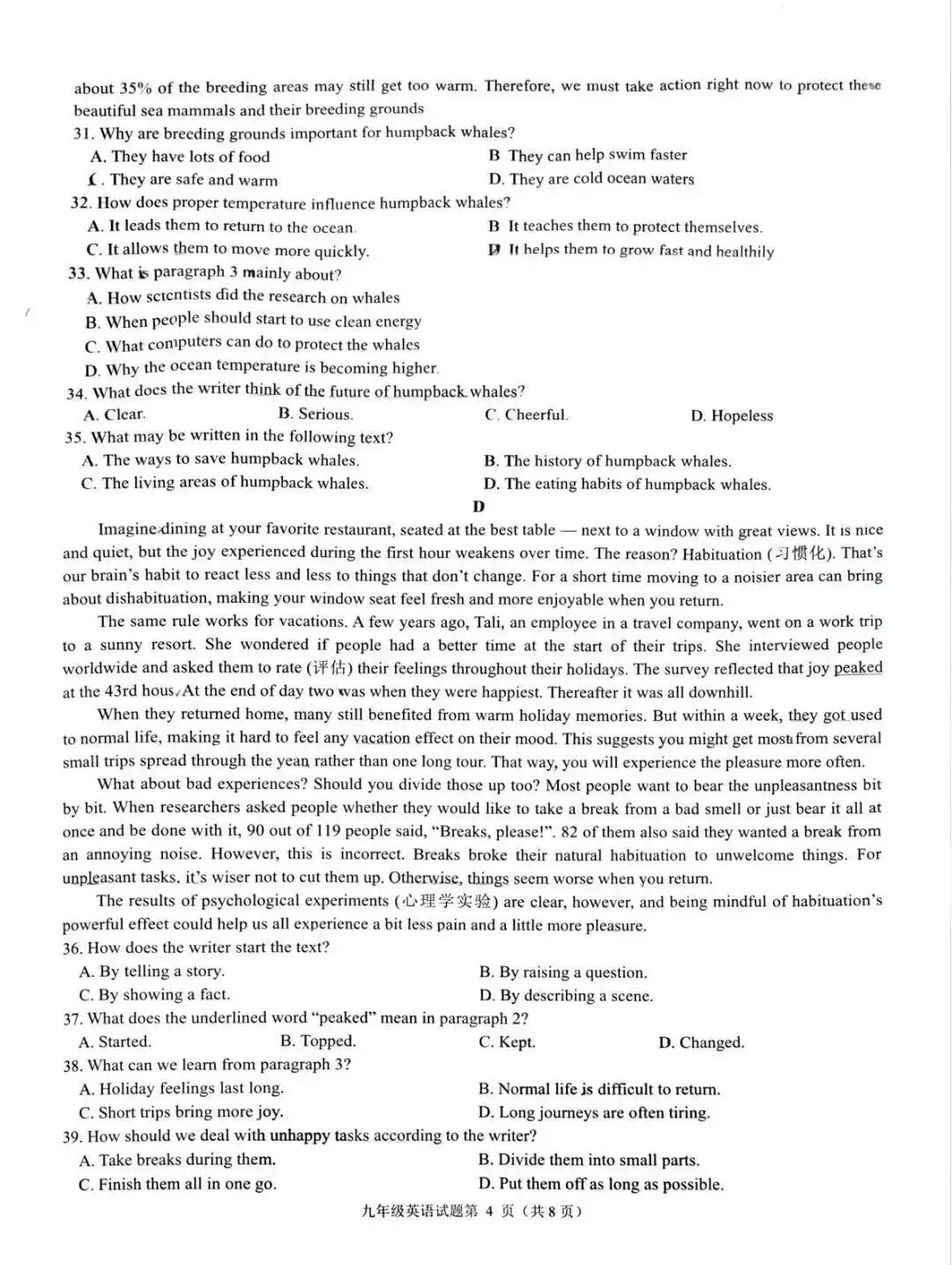 解析:文末呼吁立刻行动保护座头鲸,下文最可能写拯救方法。
