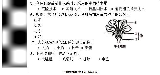 >2023年辽宁省初中学业水平考试生物学试卷