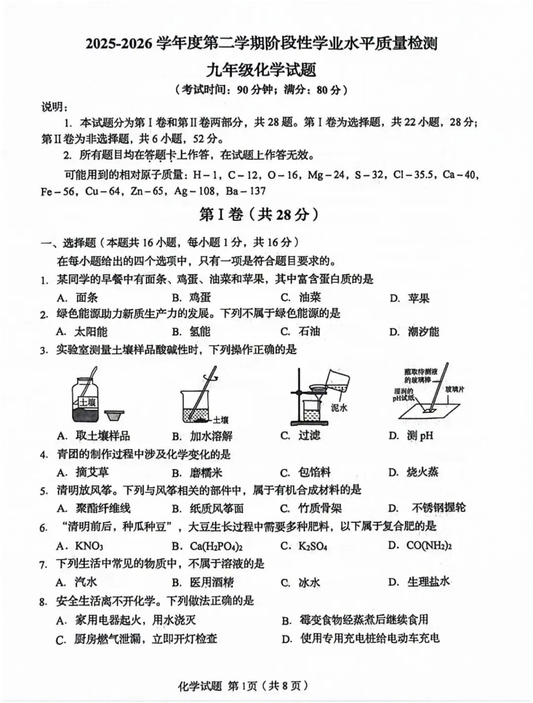 最新!2026年市南一模化学试卷