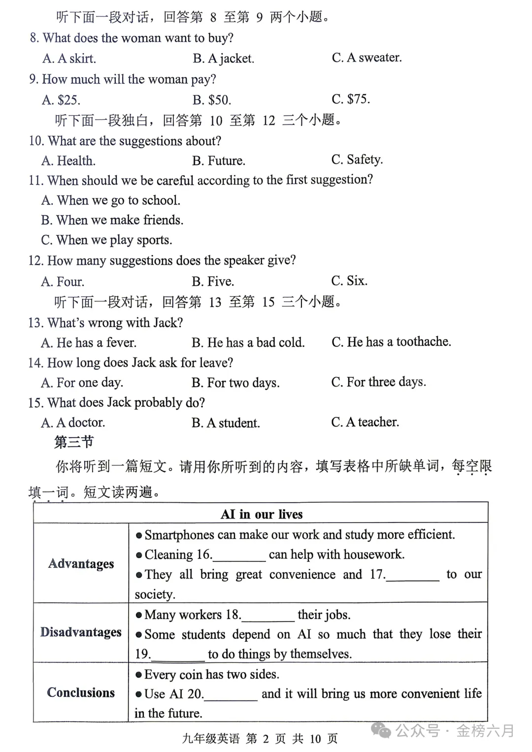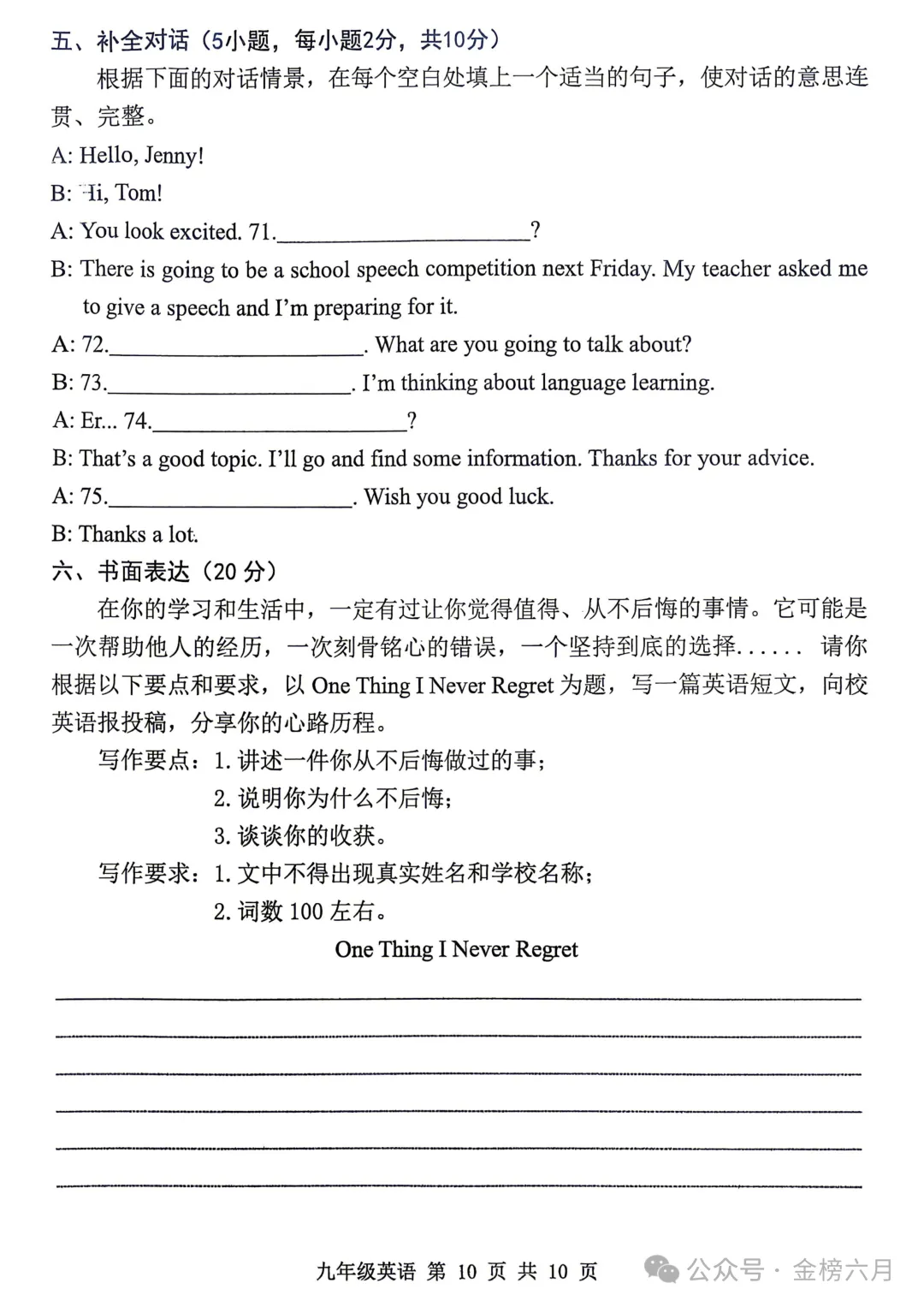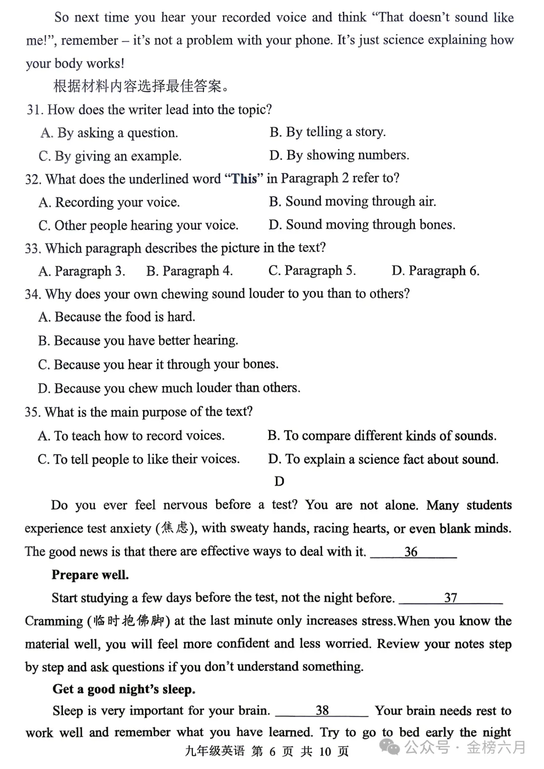 关注公众号,获取试卷电子版