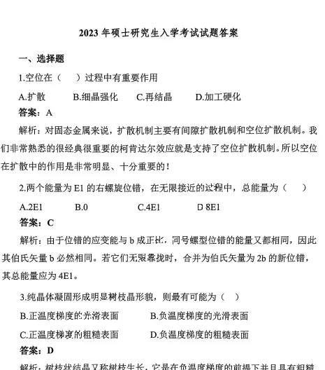 【说明:最新考试科目816材料科学基础的前身为844金属学和827材料科学基础,其中现在的816考试内容与844金属学更为贴近,所以我们将往年两个科目的真题都放进去】