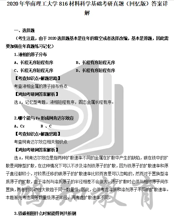 2025年华南理工大学816材料科学基础考研真题及答案详解