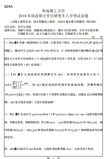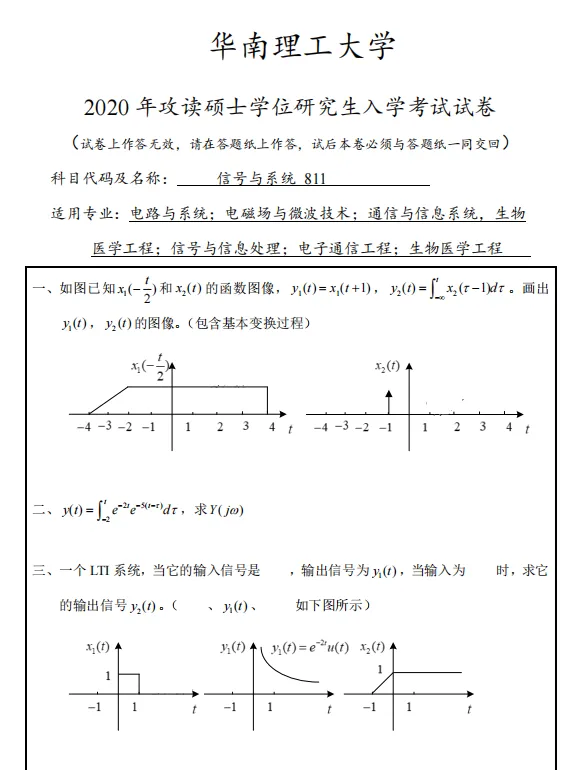 1991-2026年华南理工大学811信号与系统考研真题试卷【不含19】