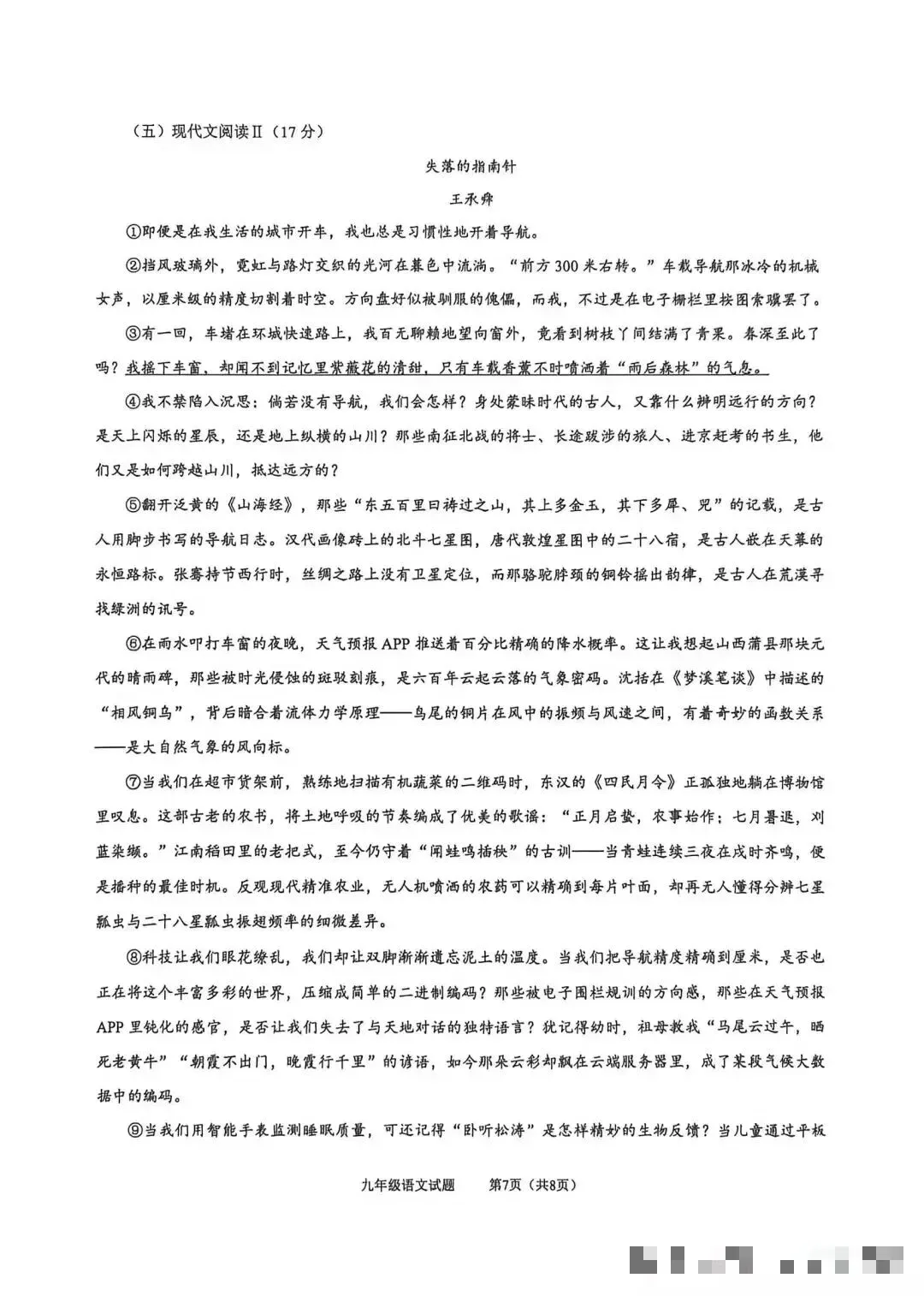 市南区九年级一模语文试卷