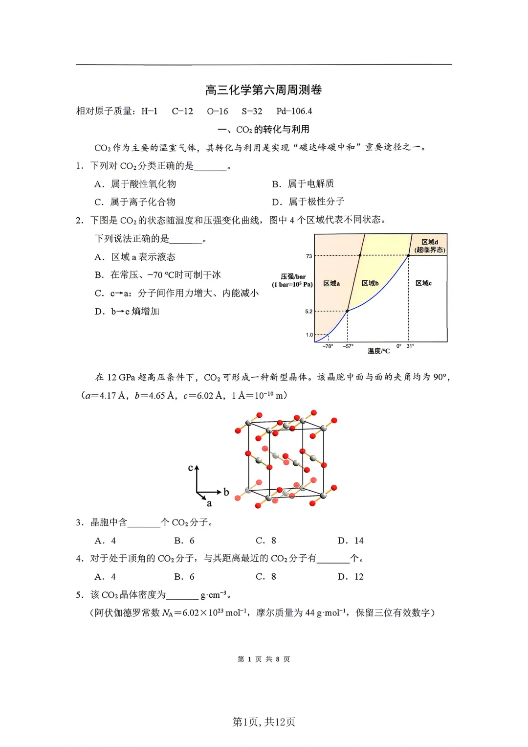 >【SH高中四校八大试卷群更新】上海市七宝中学2025-2026学年高三下学期第六周周测卷化学