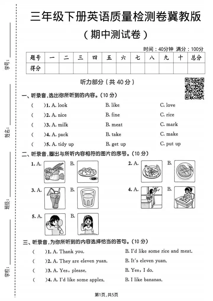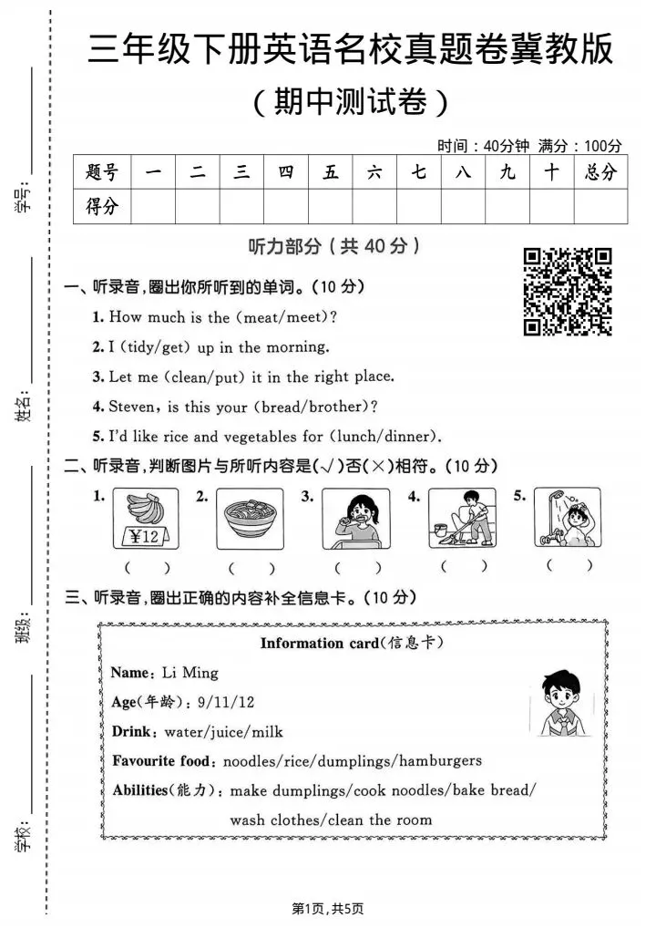 今日份分享三年级下册英语冀教版期中试卷2套含答案(完整电子版可打印)!这份资料已经整理成可打印版本,方便孩子随时翻看学习,建议家长先收藏,再转发给身边有需要的家庭,一起帮助孩子高效学习~