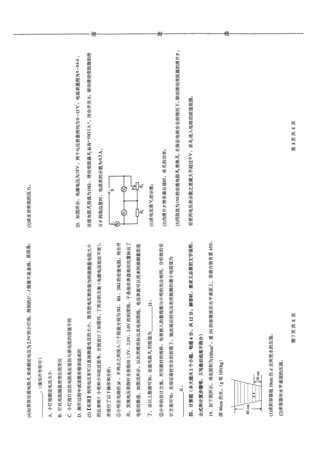 远航初三二模物理试卷