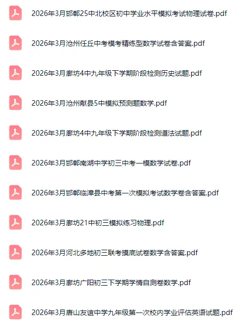 今天给同学们分享的是2026年3月河北省各地初三模考试卷