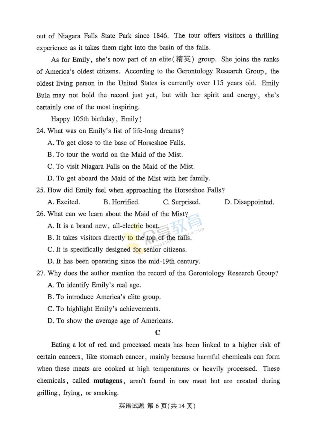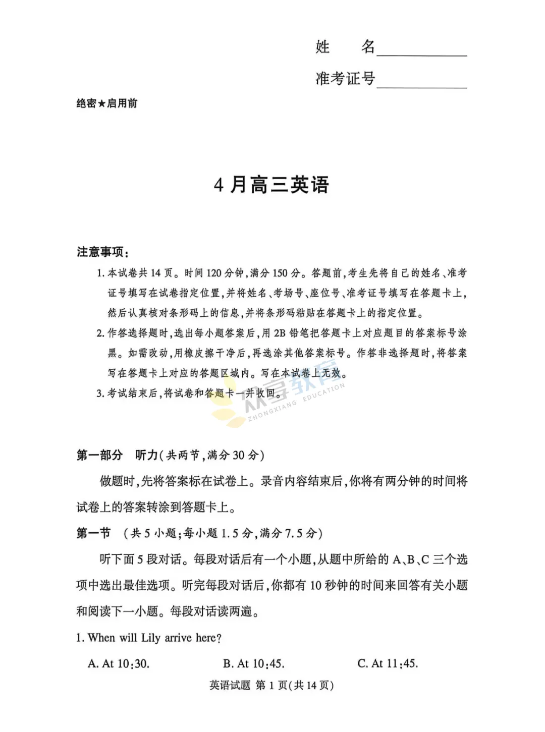 高三下学期4月阶段检测试卷(英语)