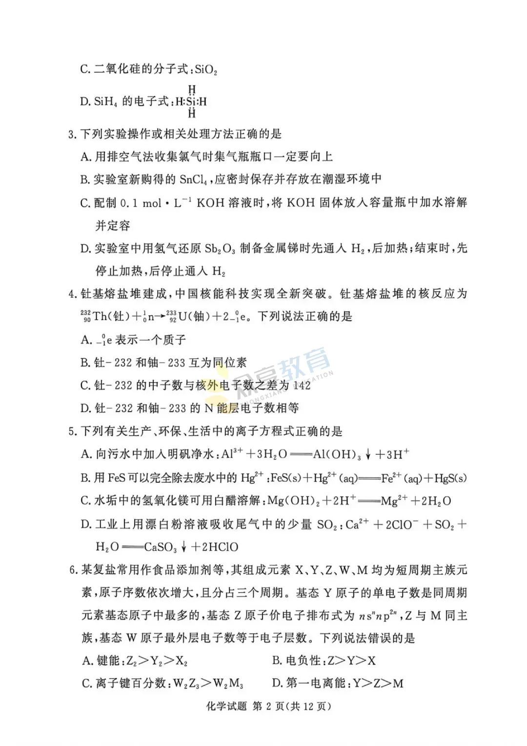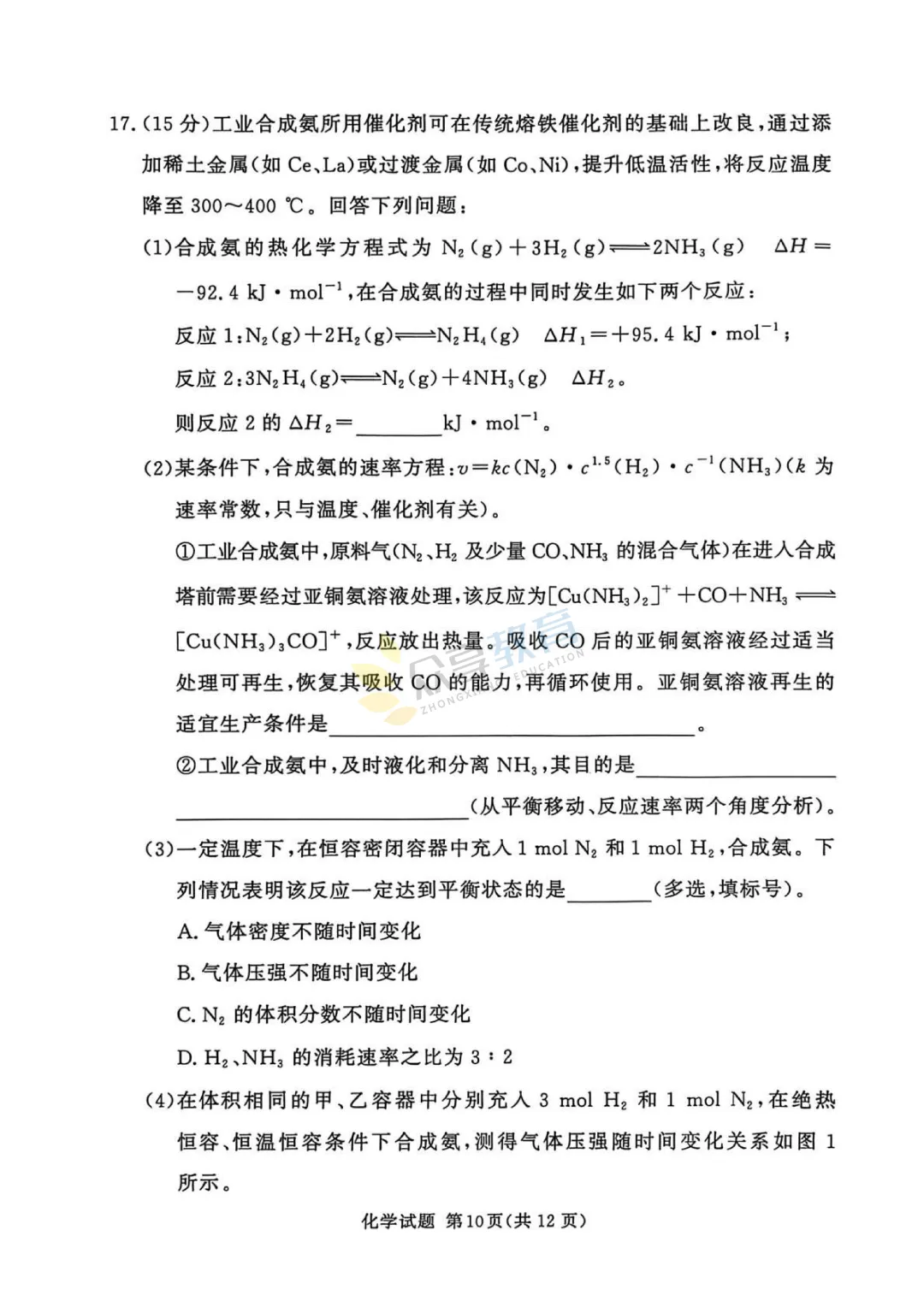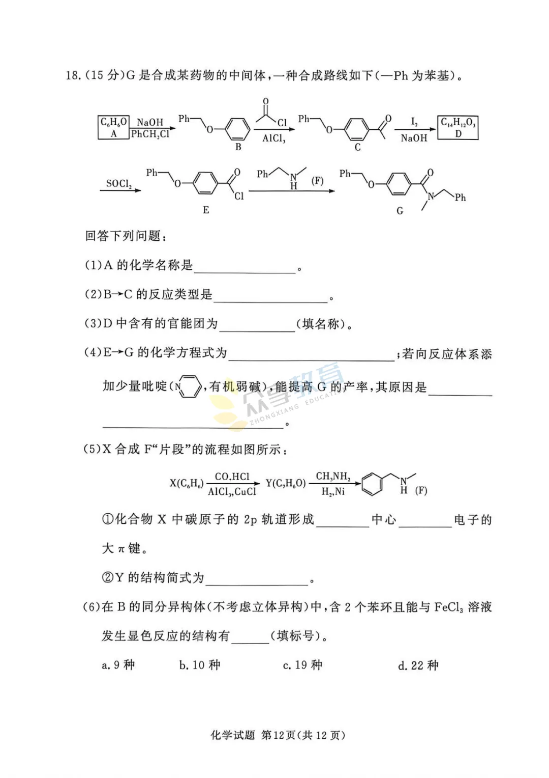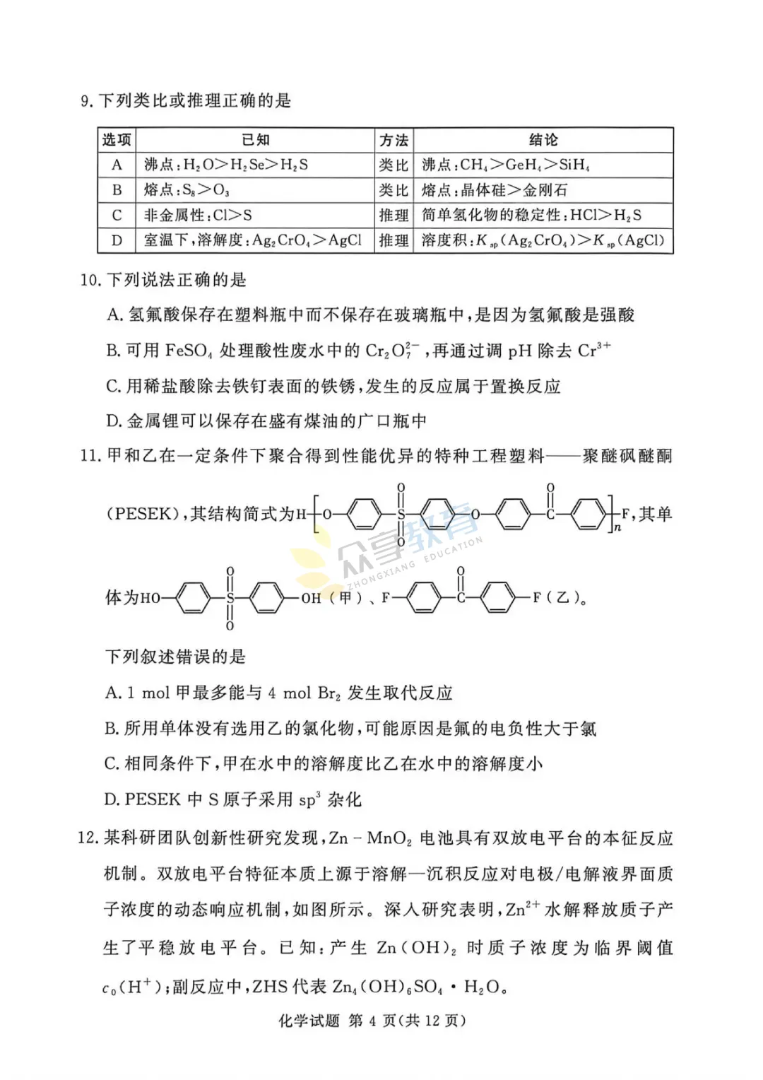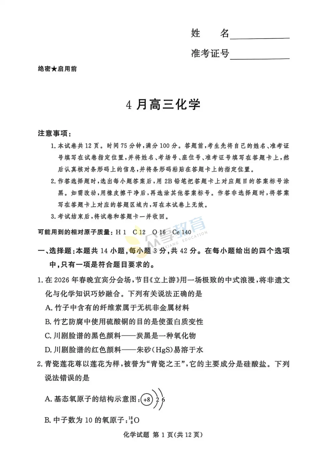 高三下学期4月阶段检测试卷(化学)