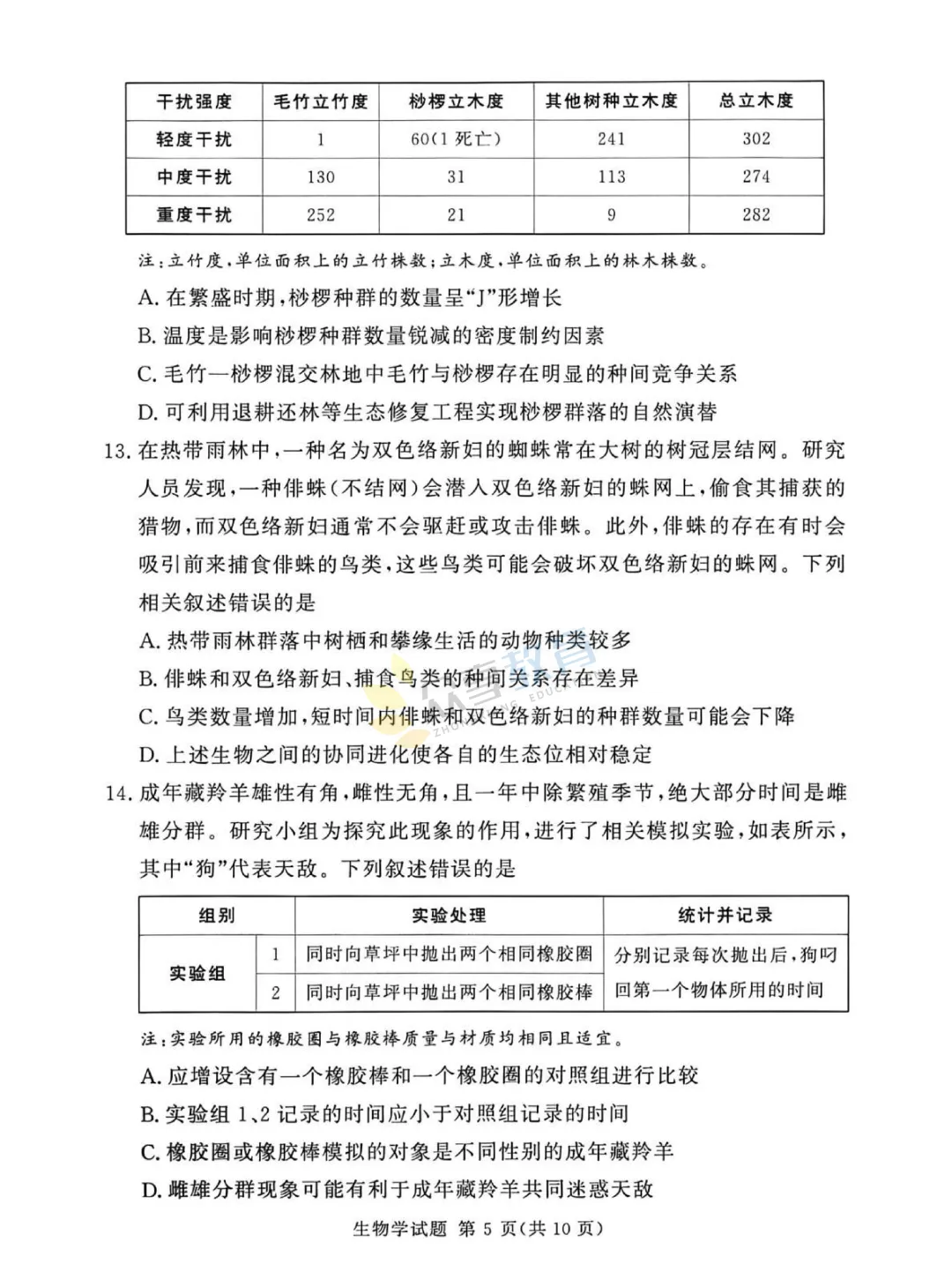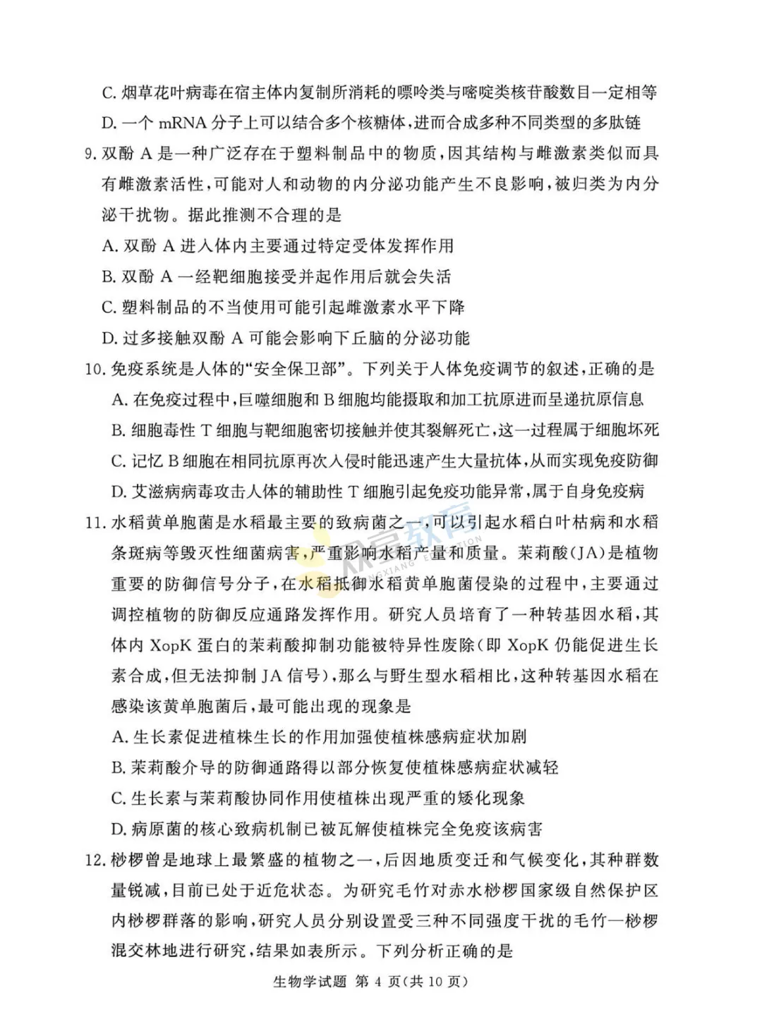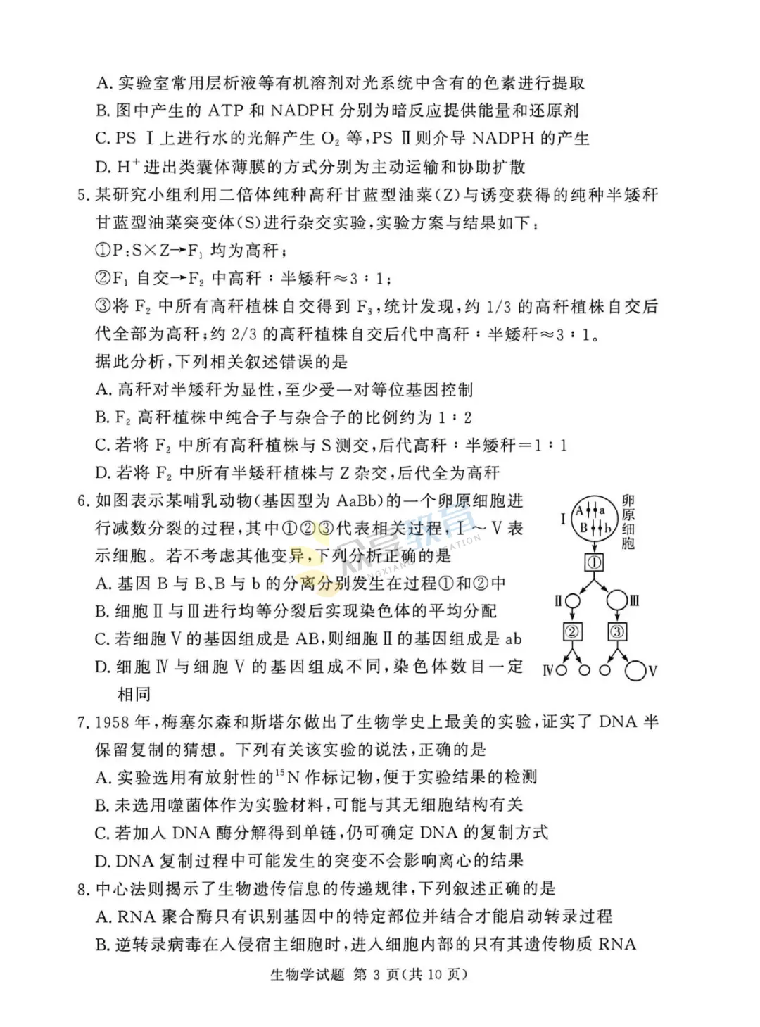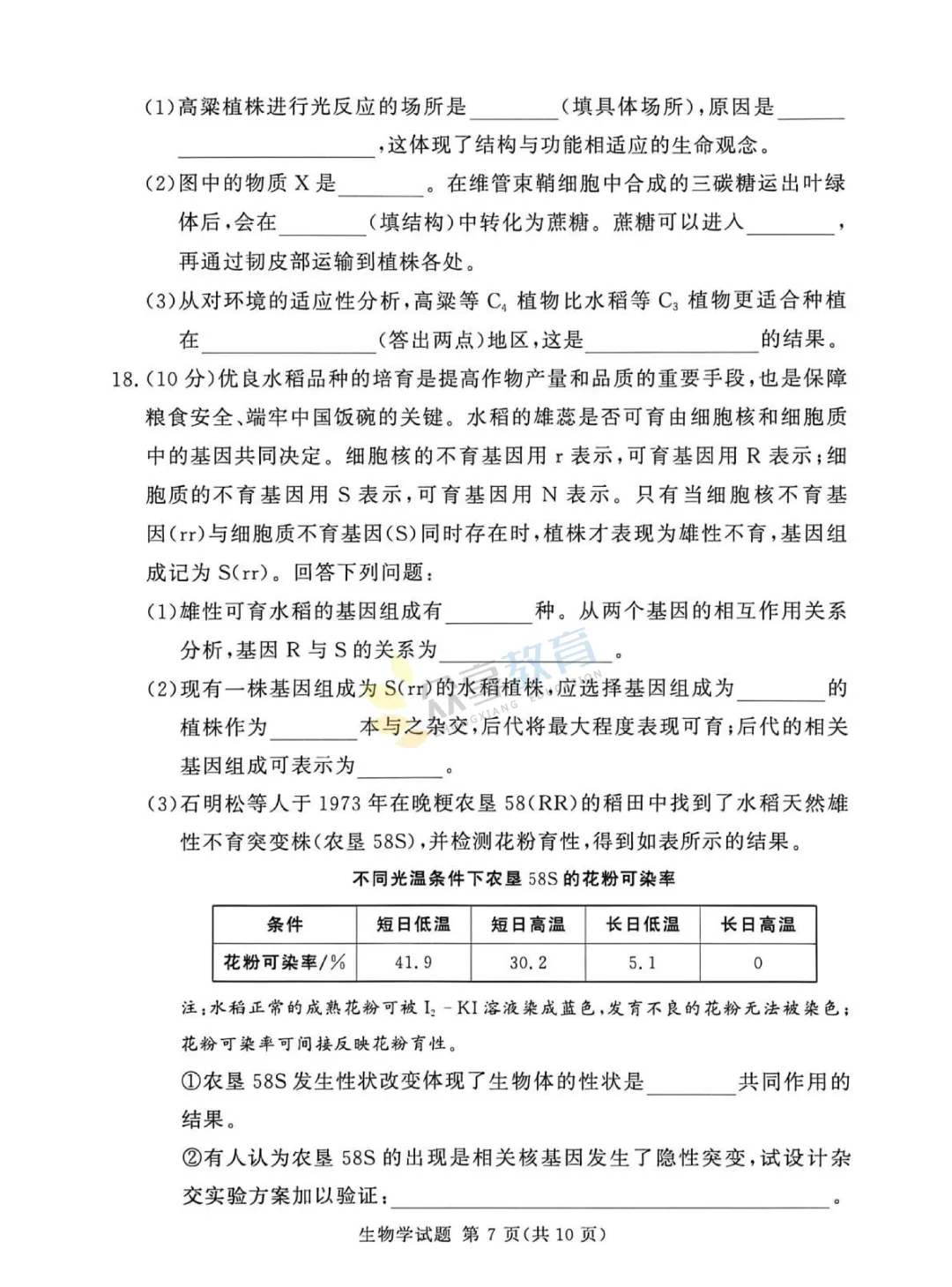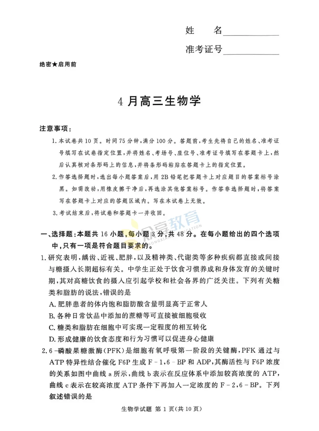 高三下学期4月阶段检测试卷(生物)