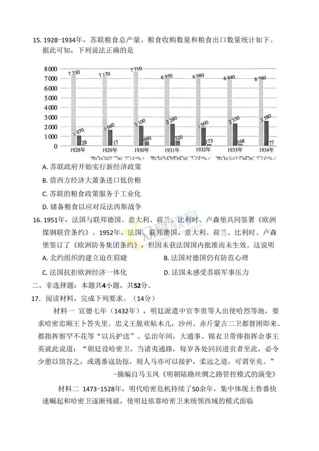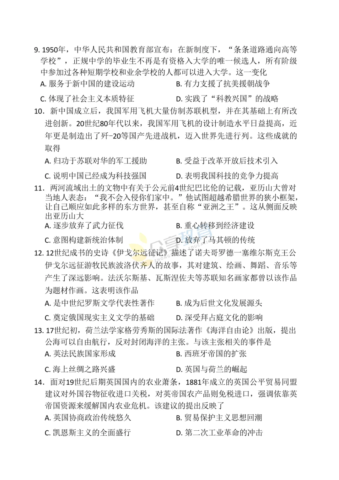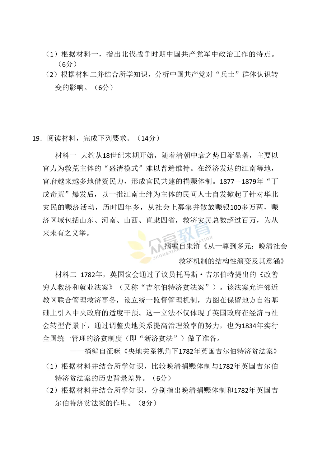 高三下学期4月阶段检测试卷(历史)