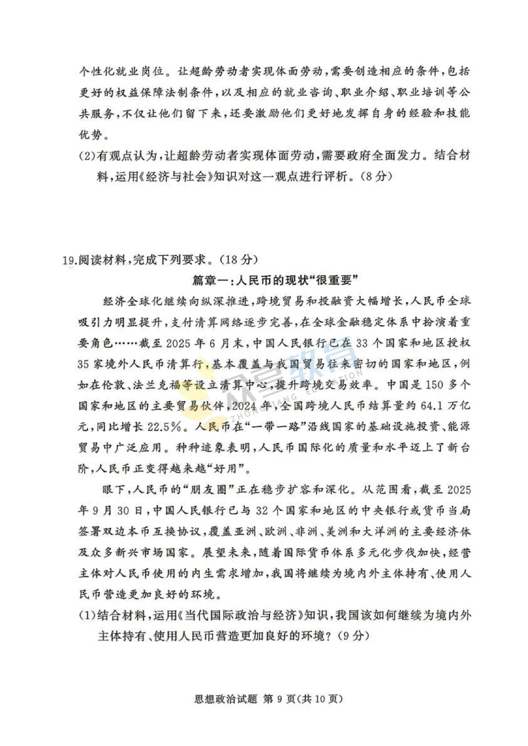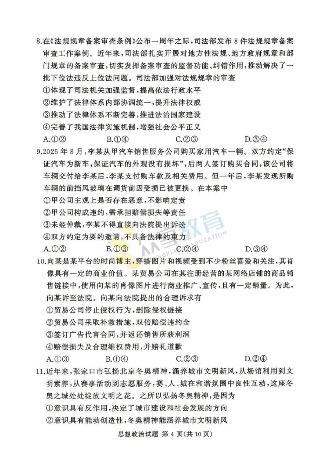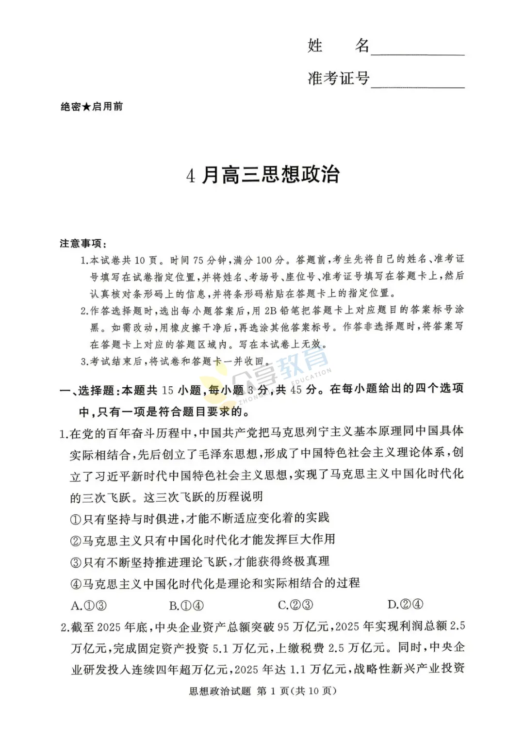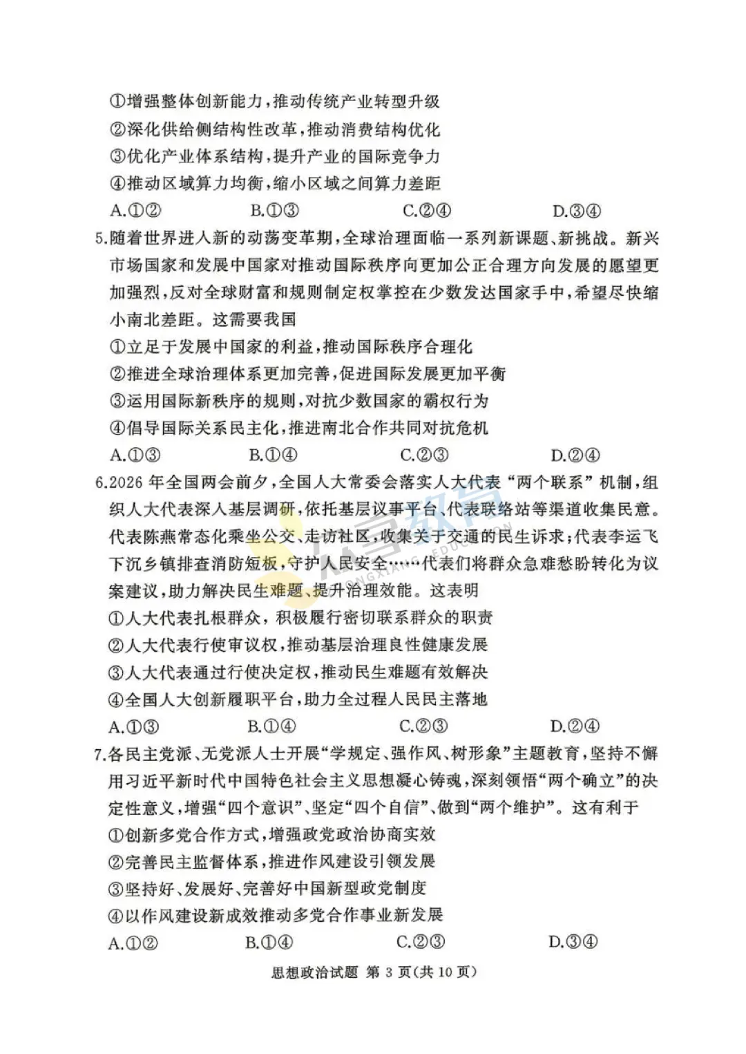 高三下学期4月阶段检测试卷(政治)