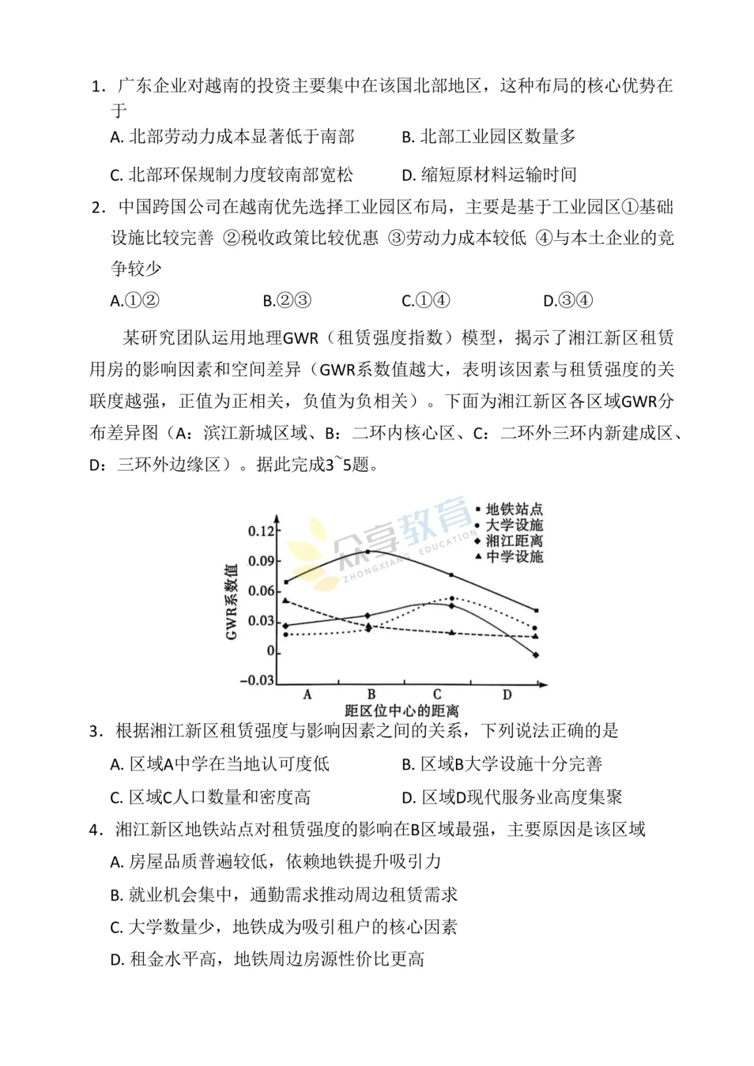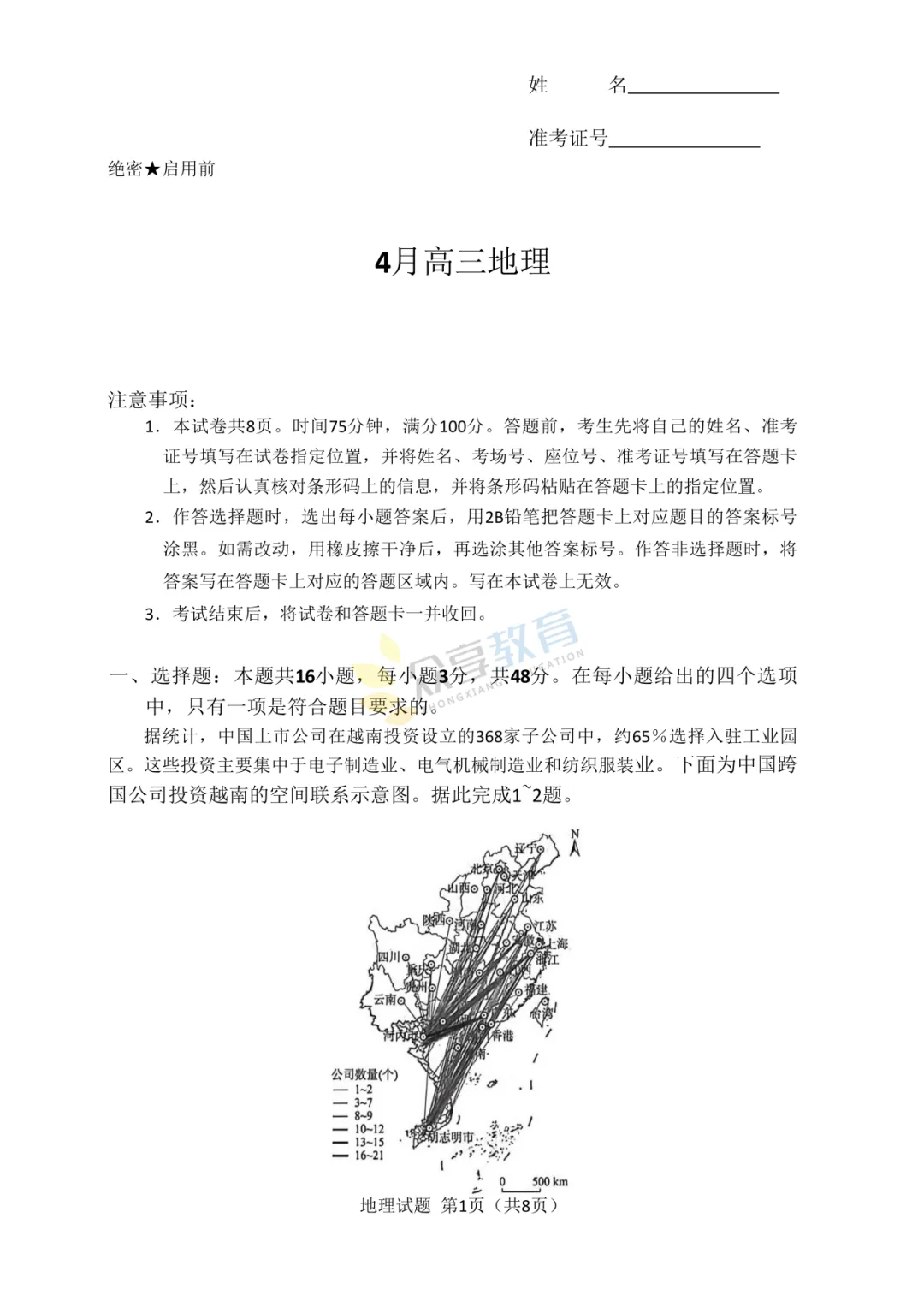高三下学期4月阶段检测试卷(地理)