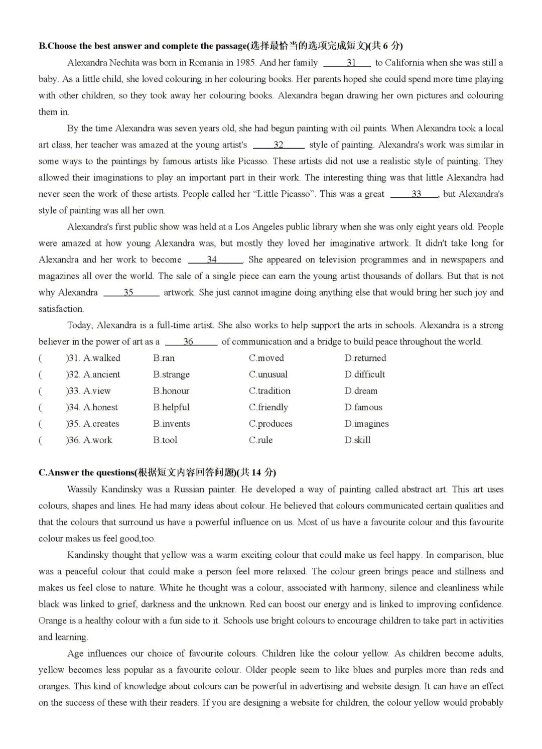✅ 阅读理解及作文