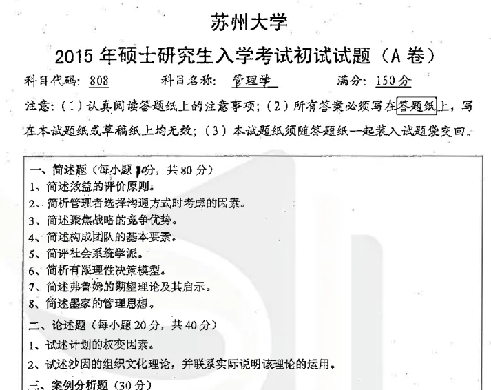 2000-2025年苏州大学808管理学考研真题试卷【近年回忆版】