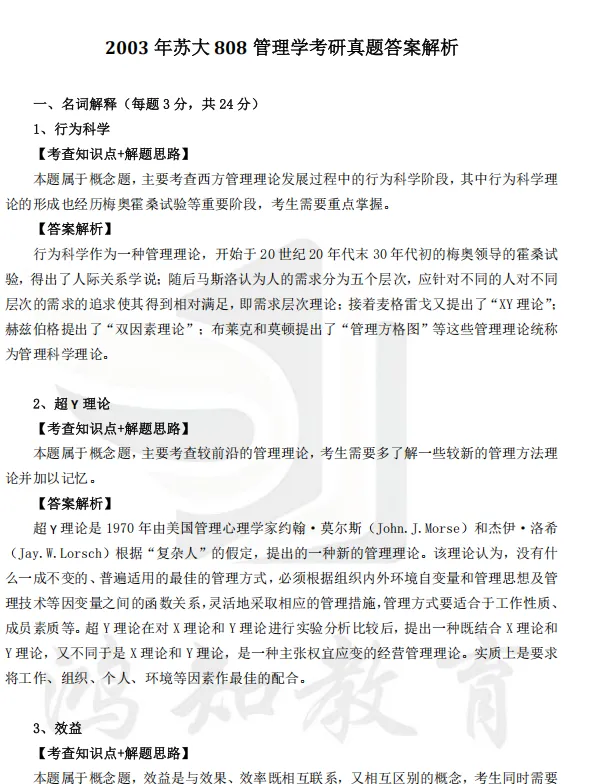2002-2023年苏州大学808管理学考研真题参考答案【答案到23】