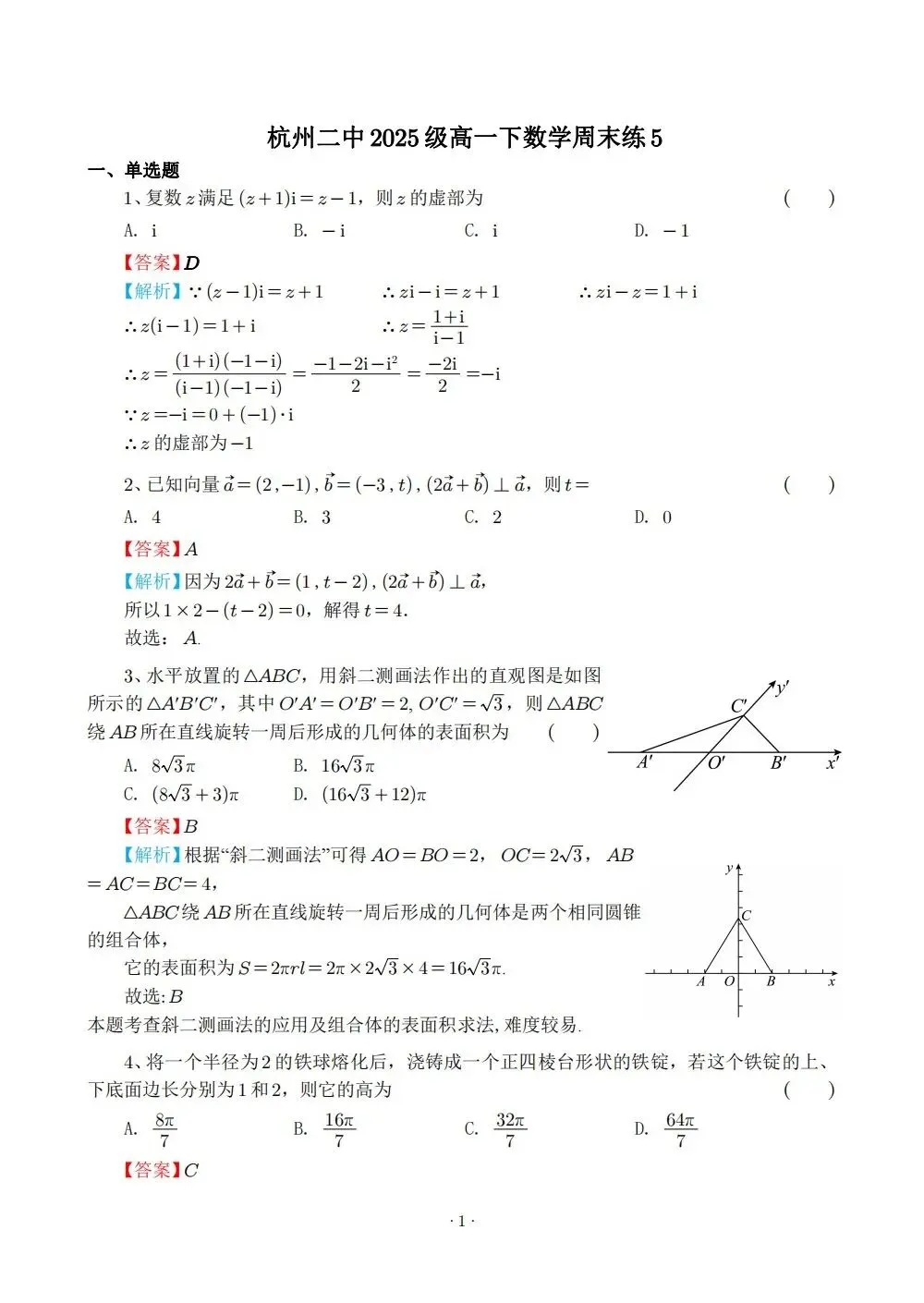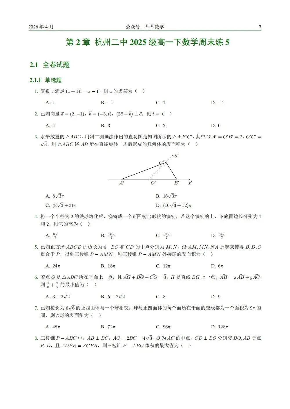 2028届高一杭二中周末限时练习5数学试卷及答案(latex排版,附把关题解析)