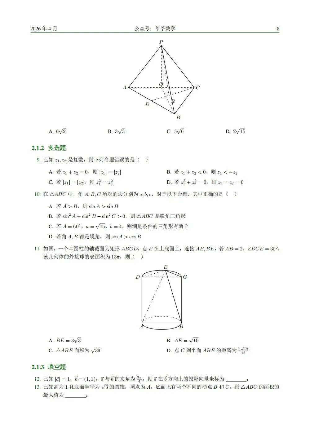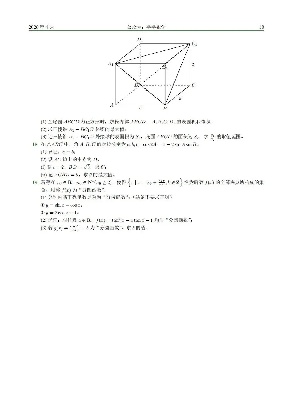 以上就是本期【数学试卷与解析】的全部内容。如果你觉得有收获,请务必点赞、在看,转发给需要的同学!关注我们的公众号,这是我们持续更新的最大动力。若需要PDF版本,请后台私信或进群自取(无偿),谢谢!
